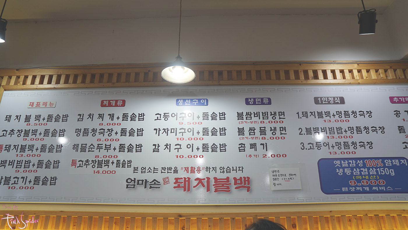 그래도 '돼지불백'이라고 하면 크게 가리지 않는 음식이라서 상계역 돌아가는 길목에 있는 엄마손 돼지불백에 갔다.