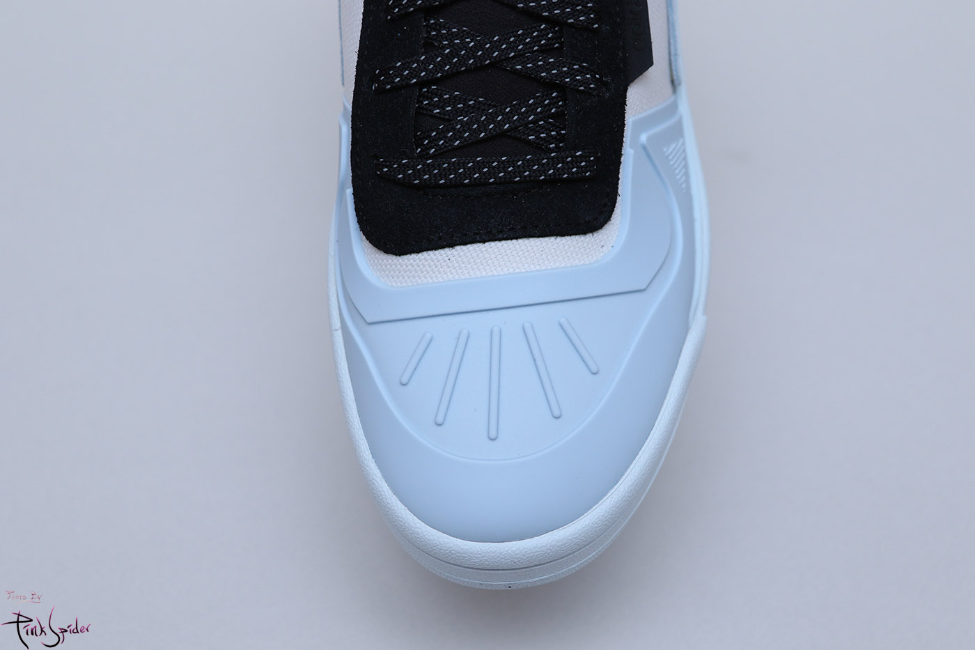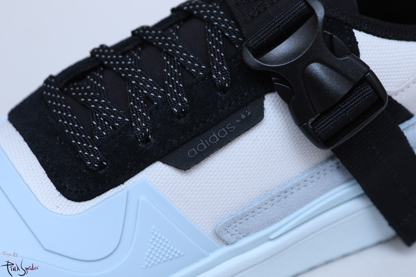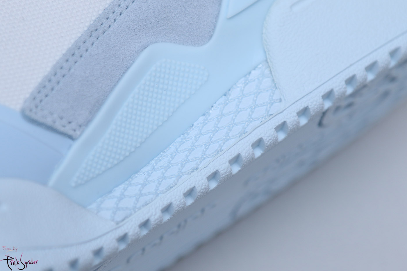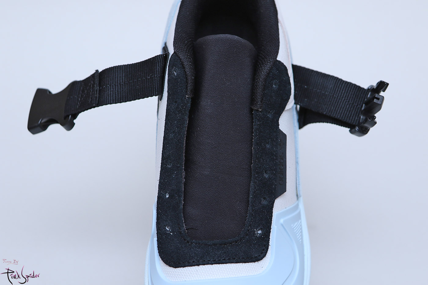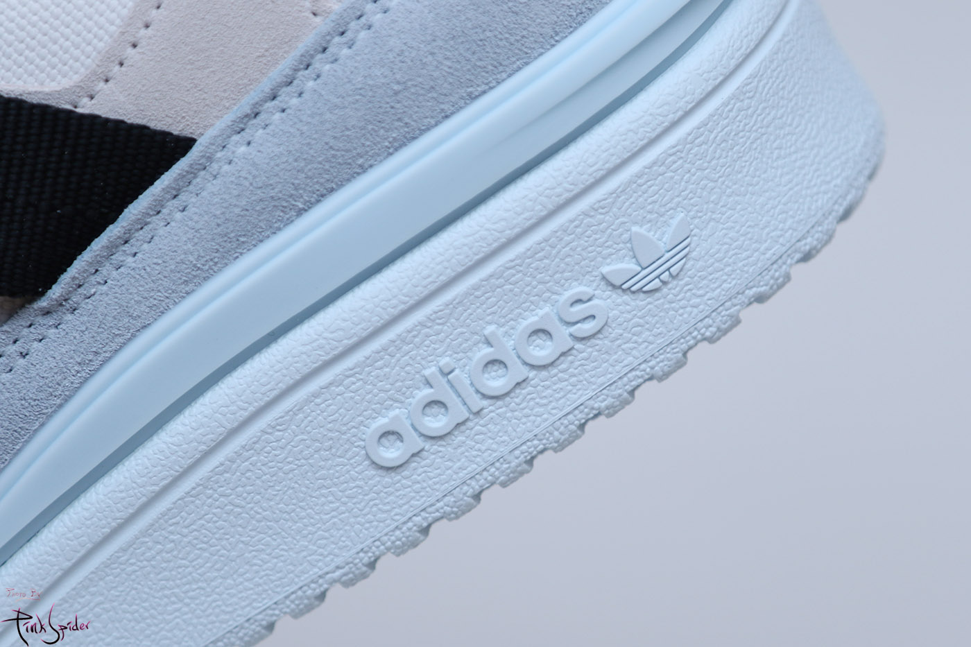 레이스홀 부분은 나일론 재질 위에 스웨이드 재질로 레이어링을 해놨고 한쪽 측면에 아디다스 로고가 새겨져 있고