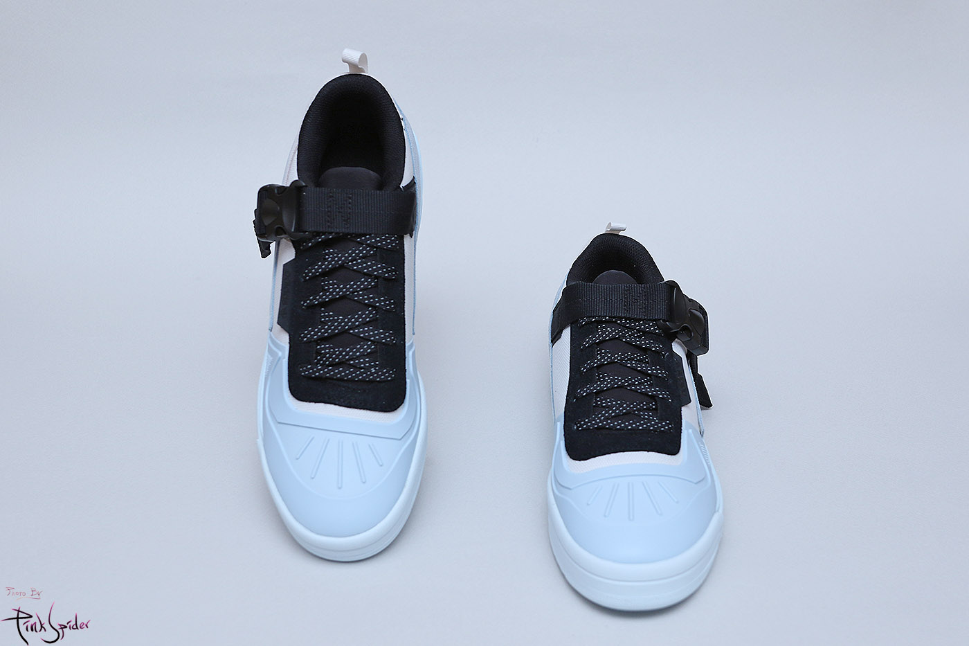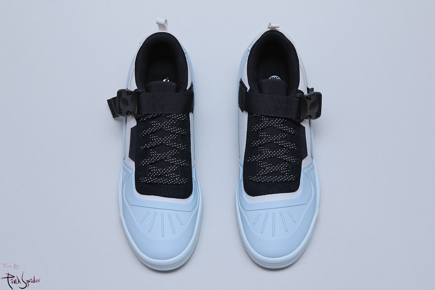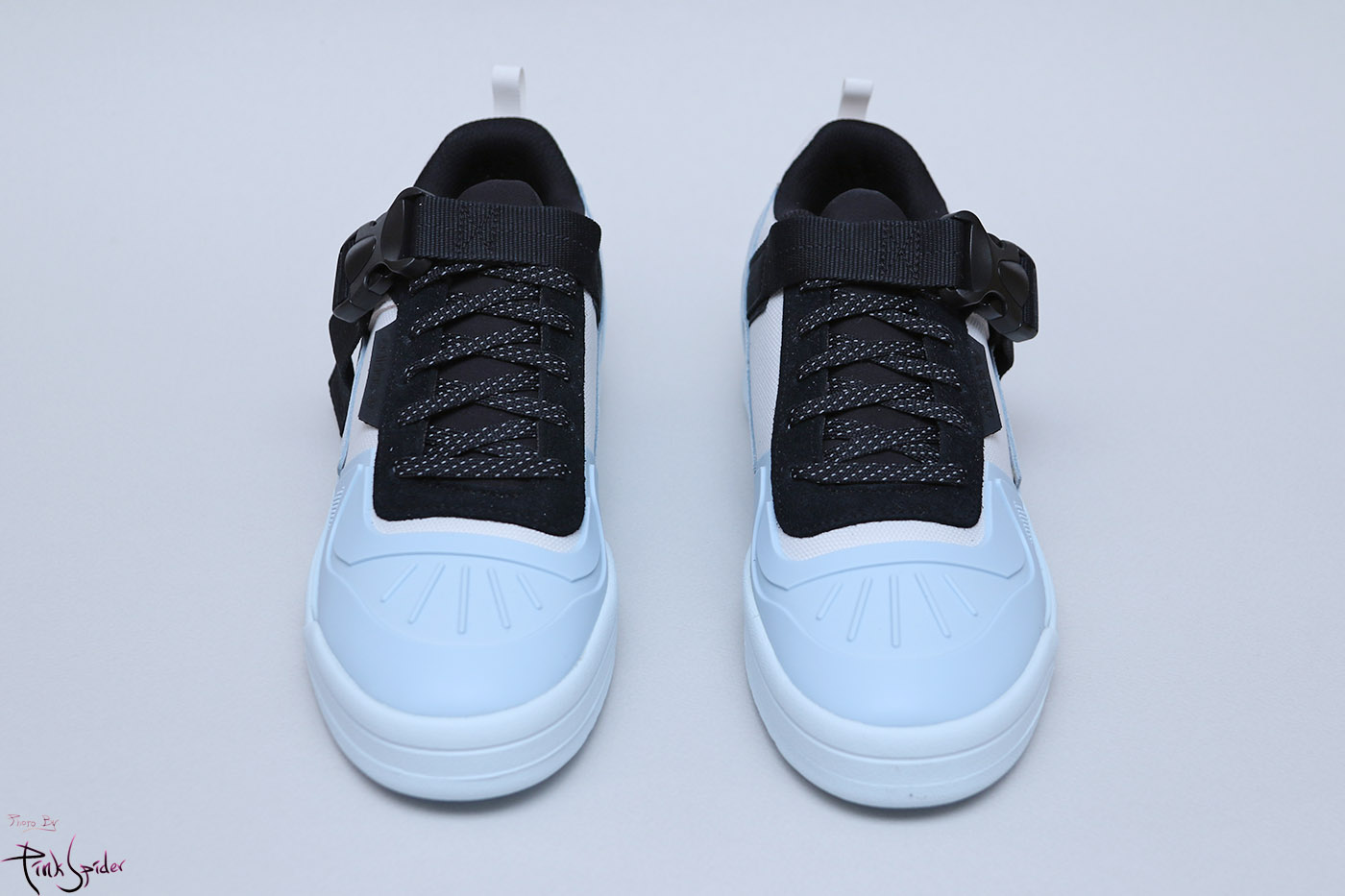 그리고 신발 중앙을 가로지르는 블랙 컬러의 넓직한 버클이 신발 전체를 너무 가볍게 보이지 않게