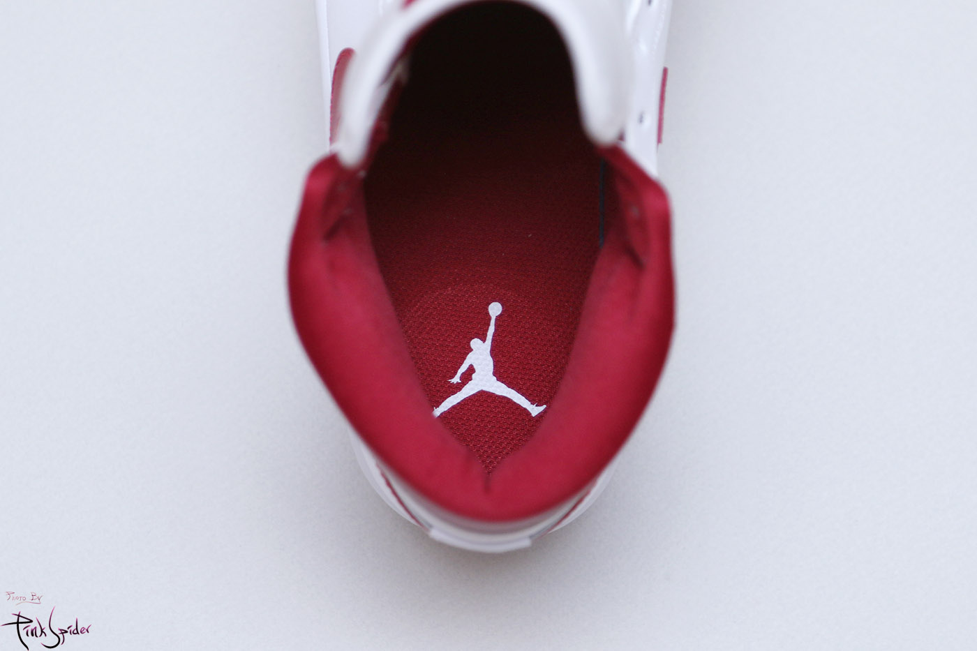 깔창은 레드컬러에 점프맨 로고가 화이트로 프린트 되어 있다.