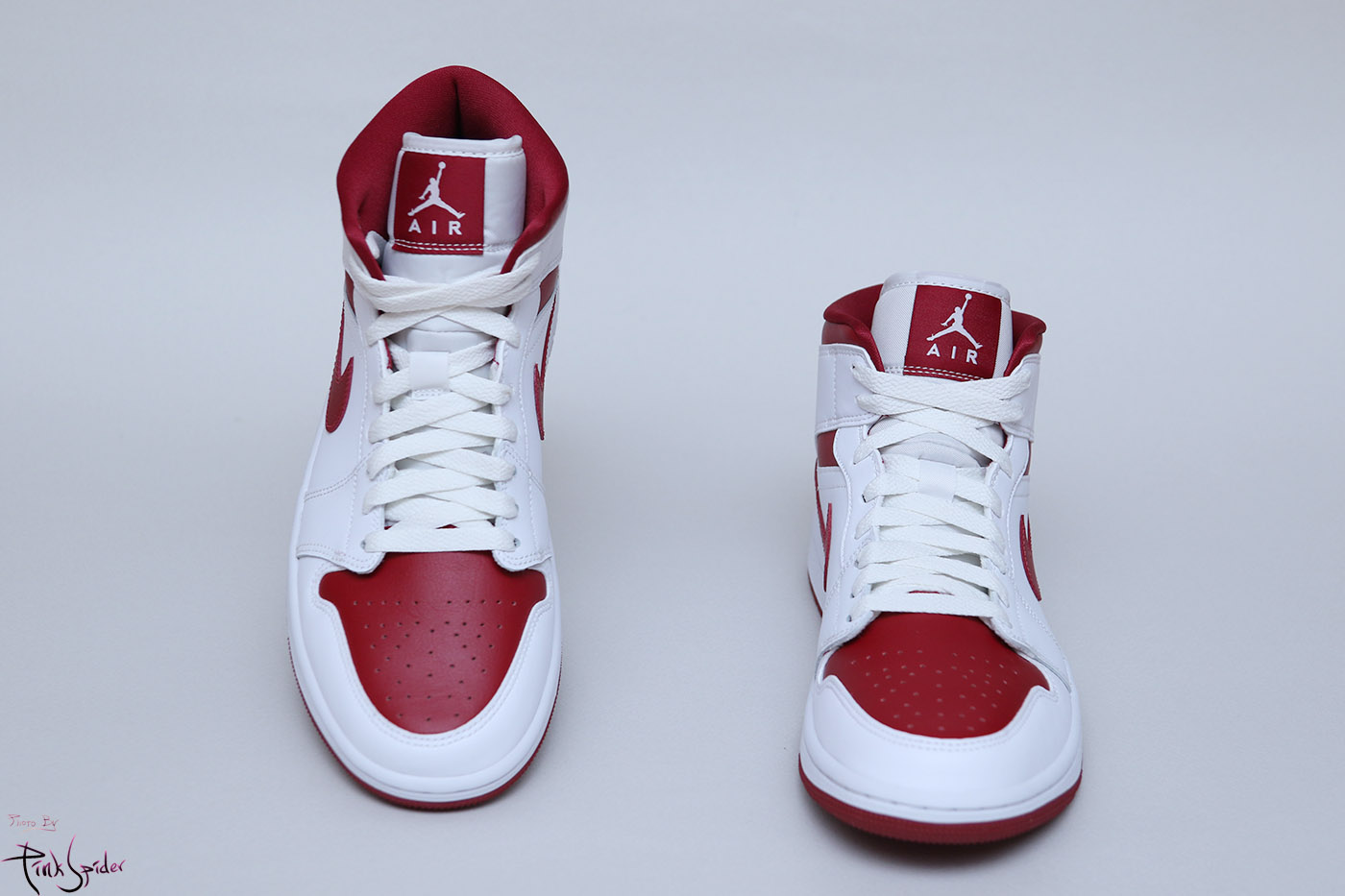 하이 컷의 경우는 나이키 로고가 붙어 있는데 미드 컷의 경우는 점프맨 로고가 붙어 있더라~