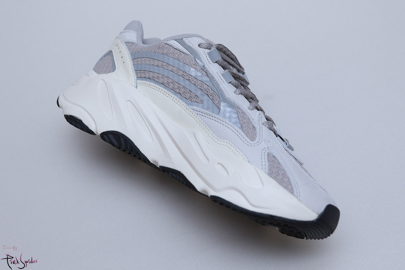 아웃솔은 미드솔과 이어지는 화이트에 블랙으로 조합해놨고 군데군데 부스트폼을 보이게 해놨다.