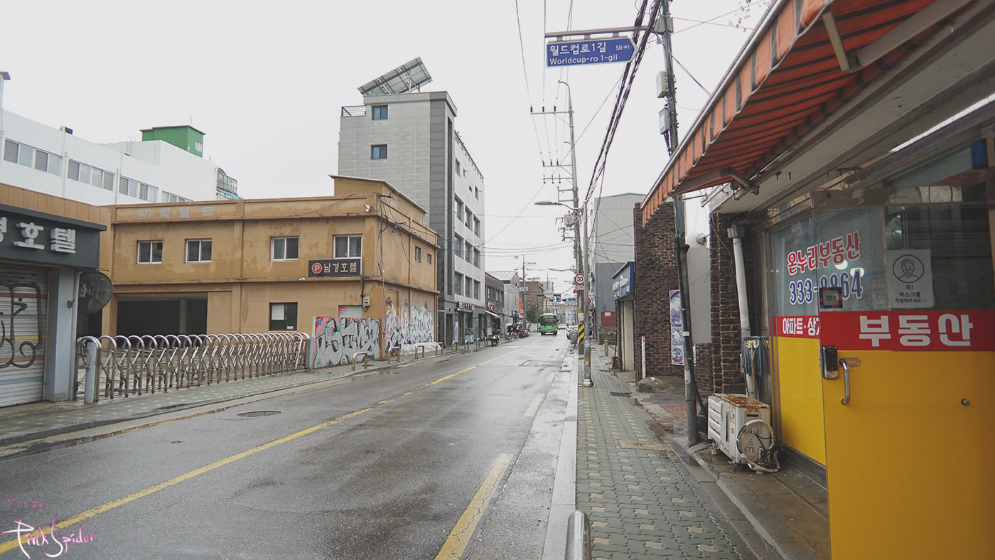 합정역에서 내려와 한강변길 옆 2차선도로를 따라 3~4분만 걸어가면 되는데~