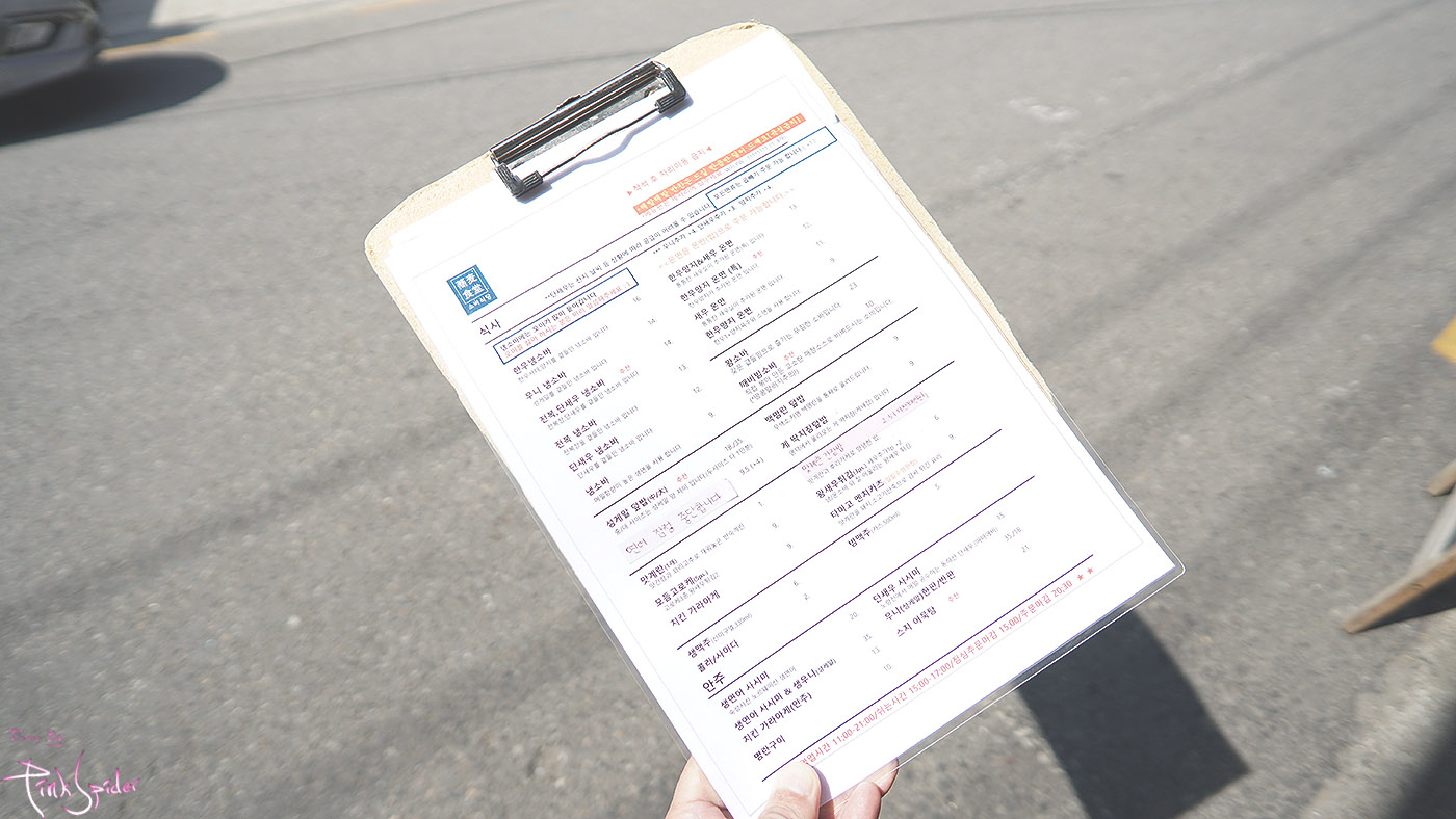 기다리고 있는데 미리 메뉴 고르라고 메뉴판을 줬다.