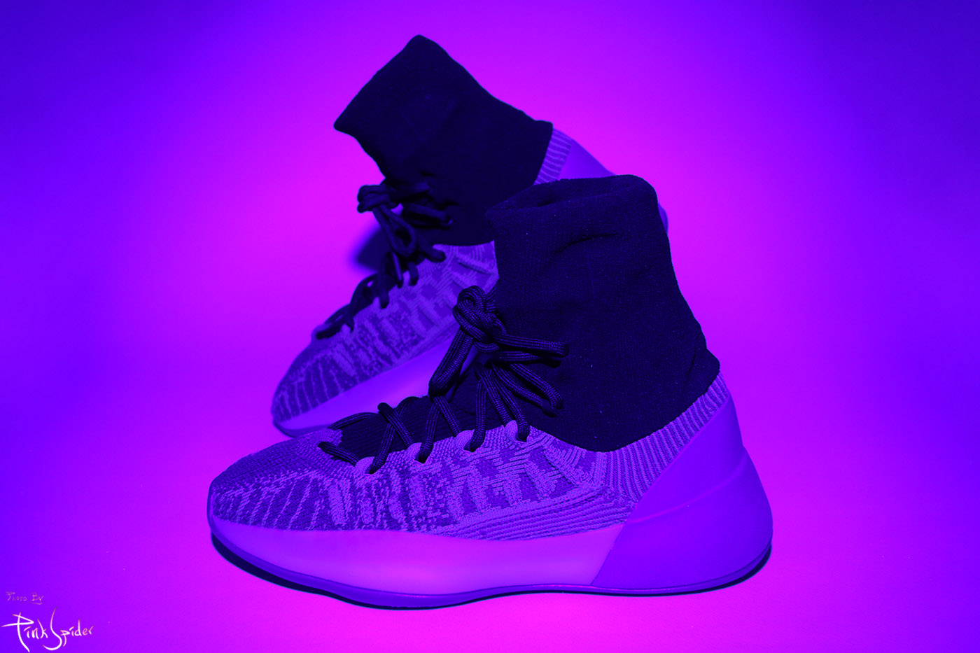 특이하게 이번 이지 바스켓볼 니트는 UV라이트에 빛반응 하는 곳이 없다.