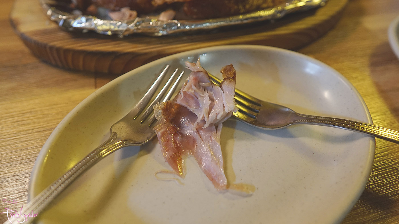 베이징 덕이 생각나는 것처럼 껍찔은 굉장히 윤기가 흐르고 바삭한 식감이 좋고