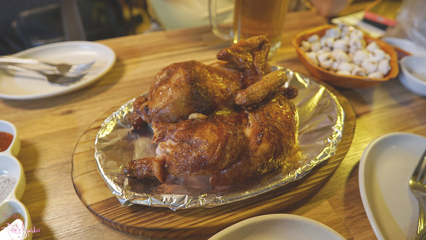 다들 배부르게 먹고 와서 한방통닭구이 하나만 주문~