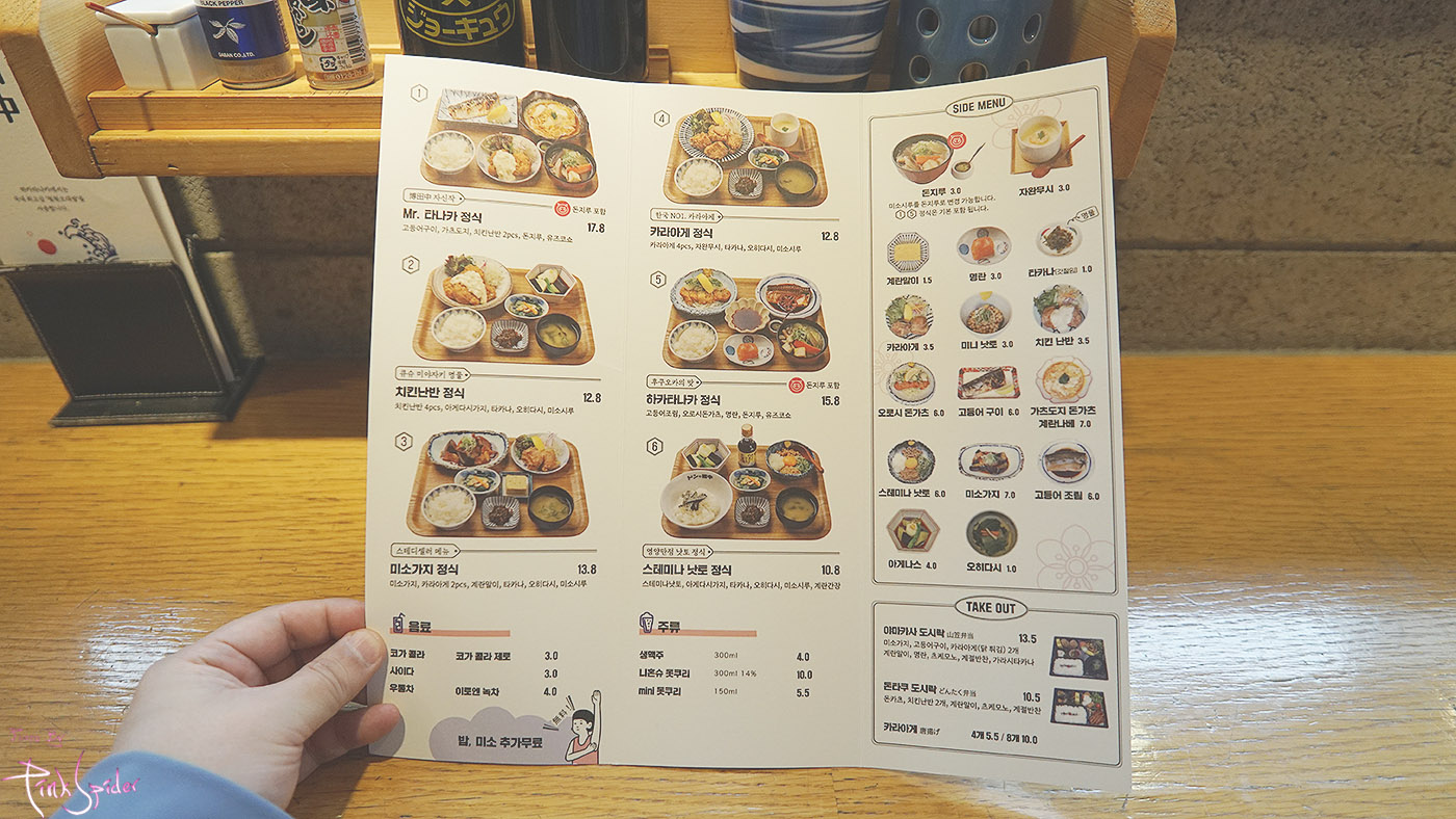 메뉴는 크게 6가지가 있는데 나는 Mr. 타나카 정식을 주문했고 추가로