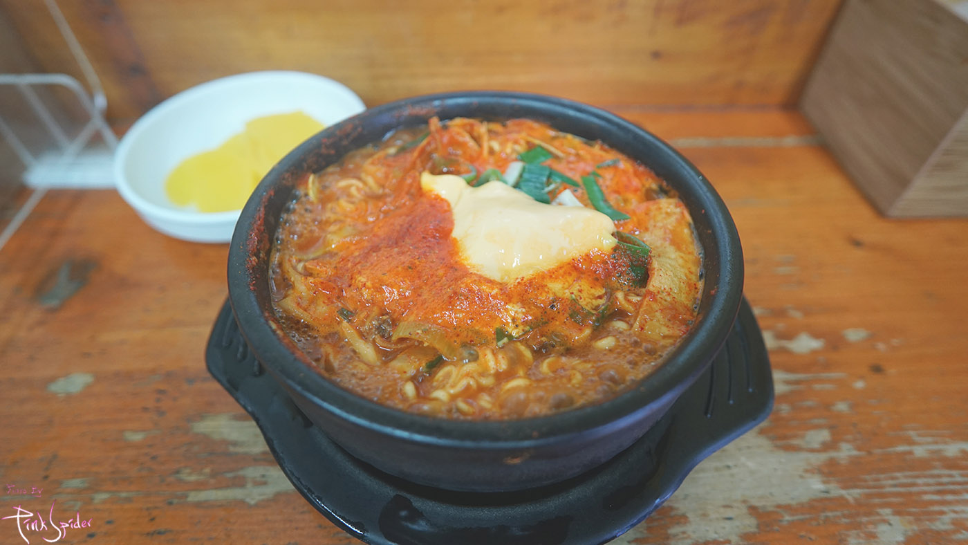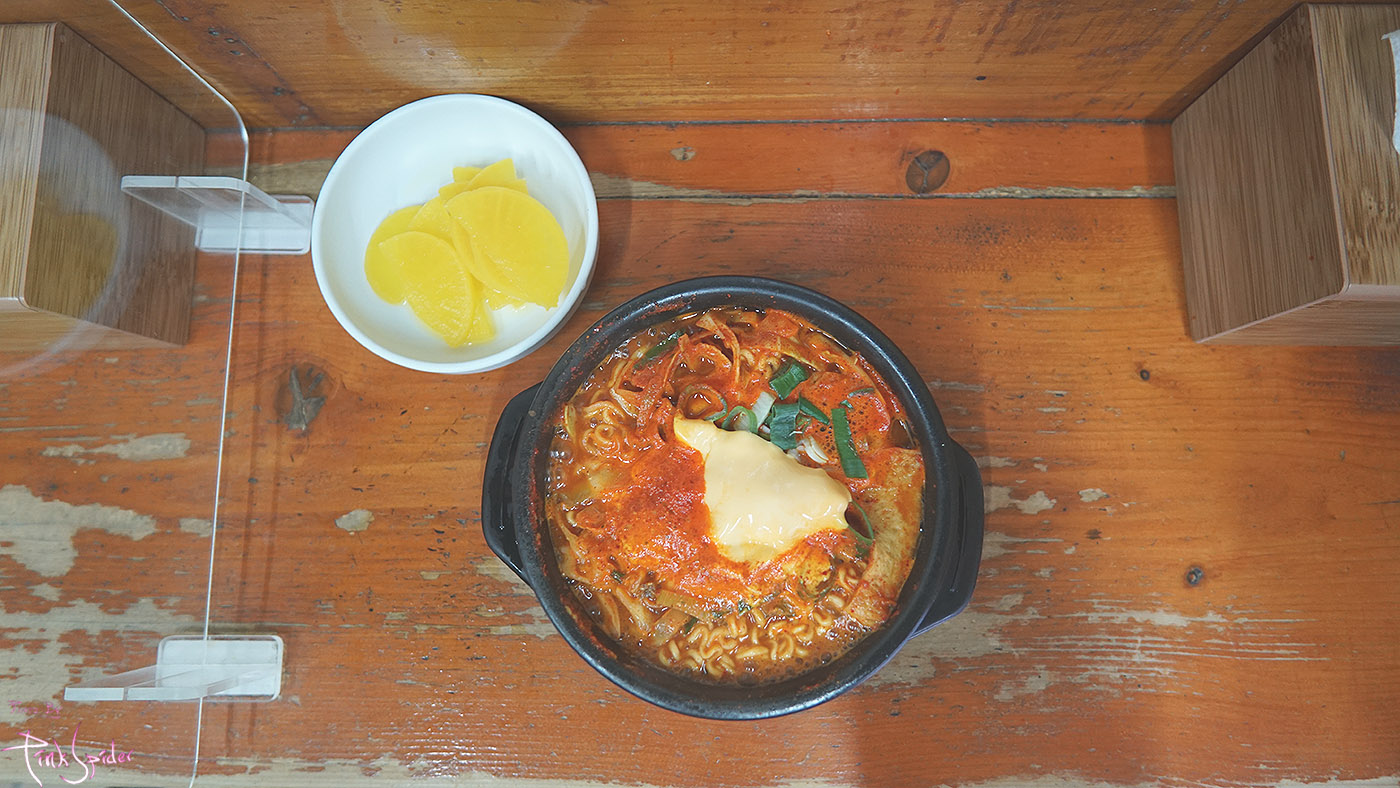 저녁 7시가 다 되어 가는 시간이라서 공기밥은 다 떨어져서 계란이랑 치즈만 추가해서 먹었다.