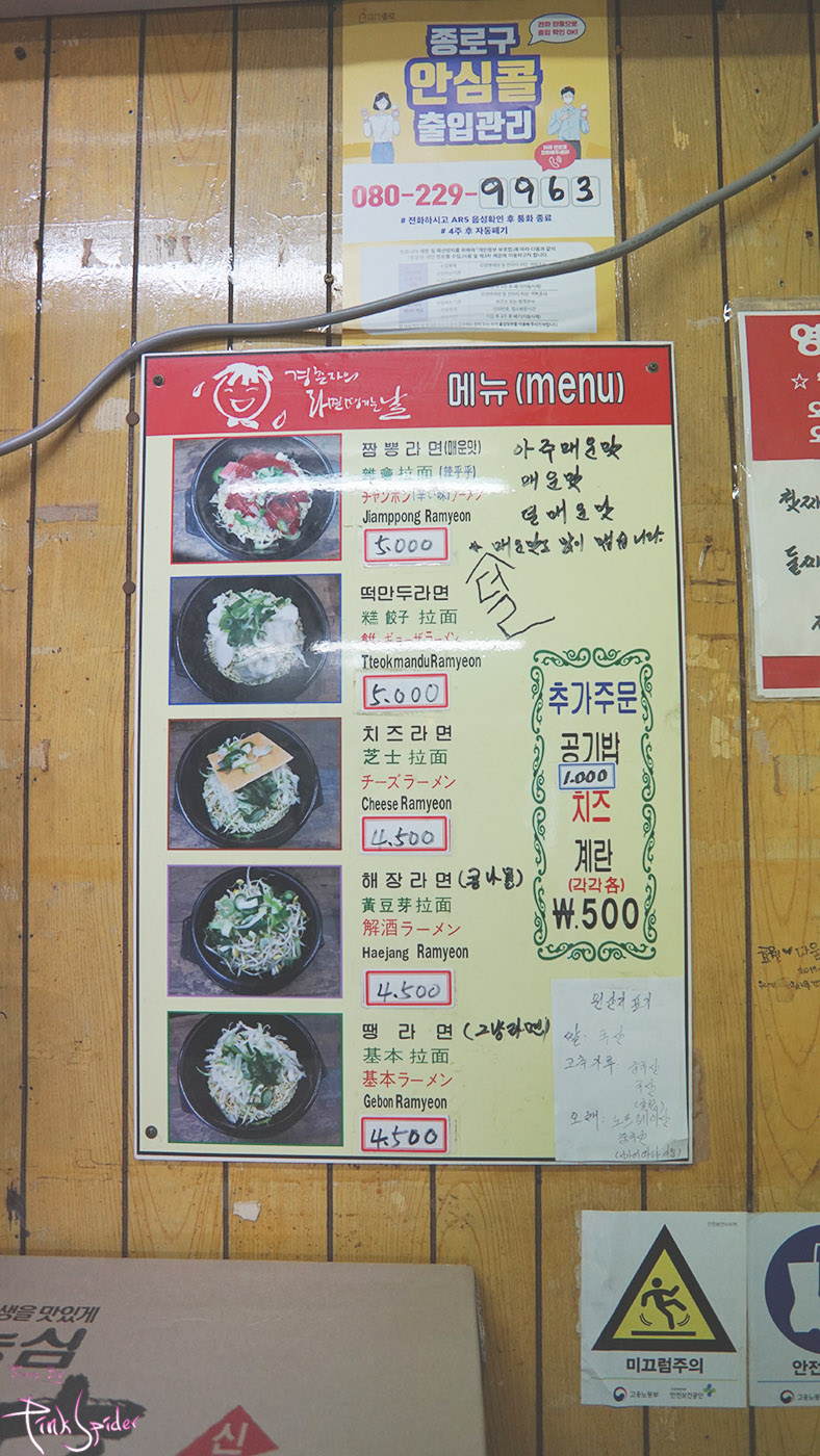 메뉴는 총 5가지가 있는데 자주 올 것이 아니라면 맨 위에 짬뽕라면