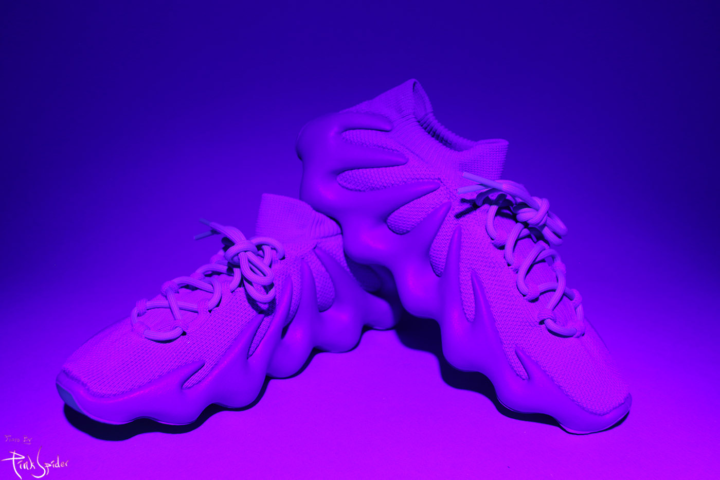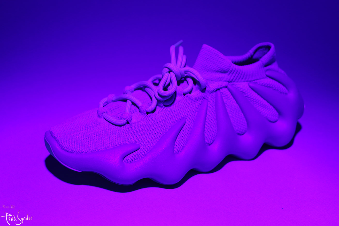 미드솔, 어퍼 어디에도 UV라이트에 빛반응을 하는 곳이 없다.