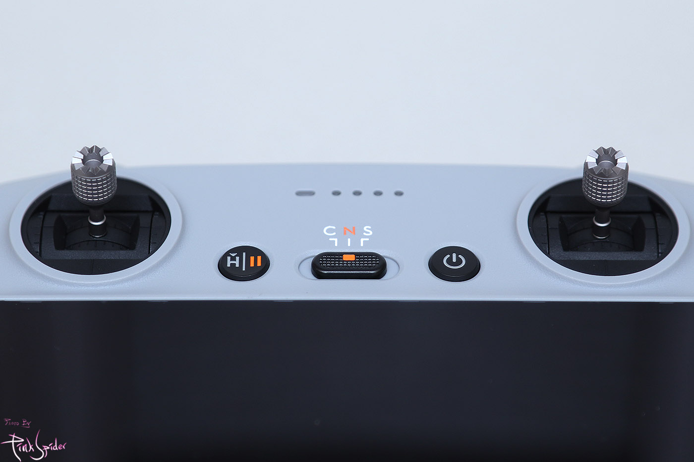 윗쪽에는 영상촬영, 사진촬영 버튼이 있고 그 밑에 각각 짐벌 피치각도 조절과 줌버튼이 있다