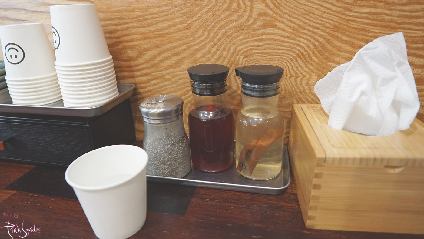 후추, 고추기름 그리고 다시마 식초도 있었는데 오늘 먹었던 교카이 라멘에는 딱히 필요는 없었던 것 같음