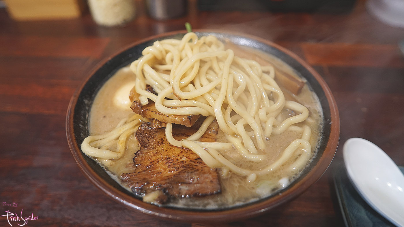 극태면(極太面)은 라멘면 치고는 상당히 두껍고 마치 우동면발 같은 느낌이었는데