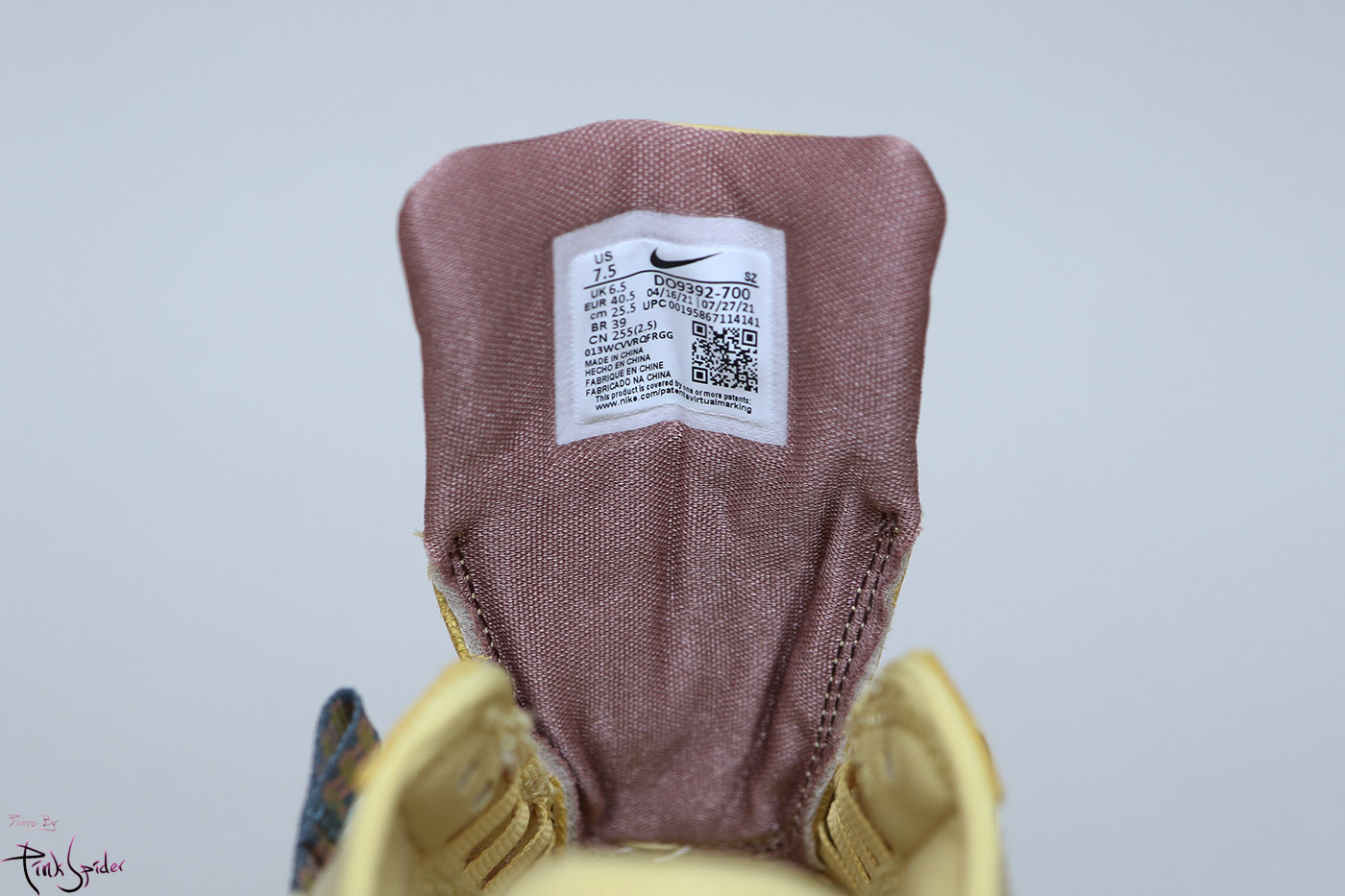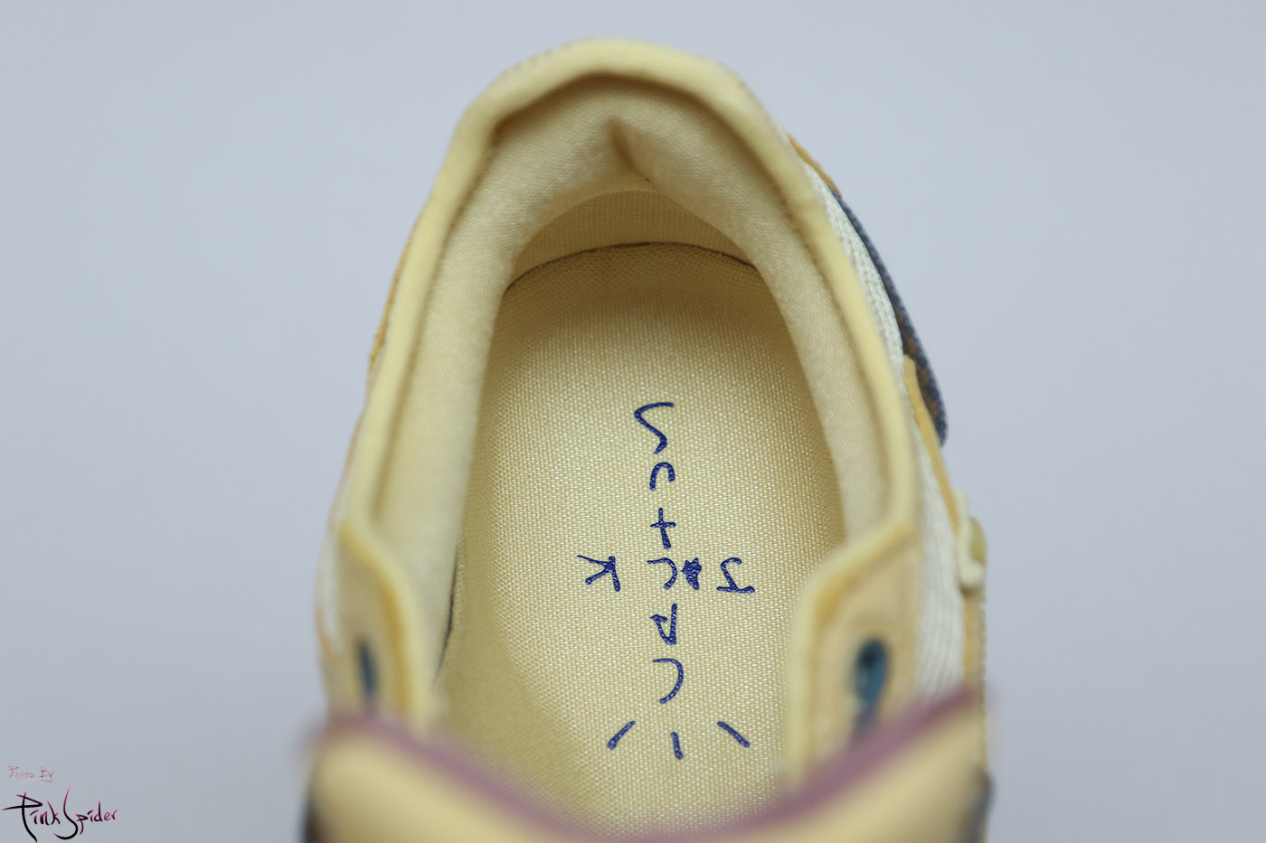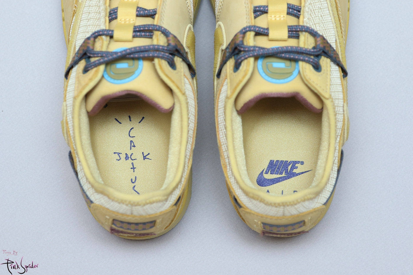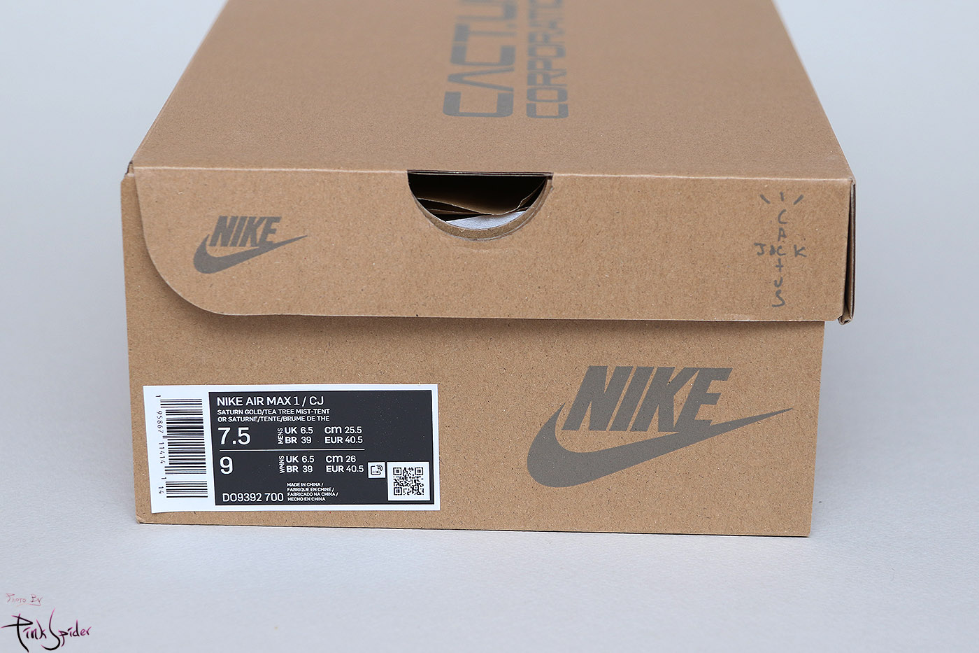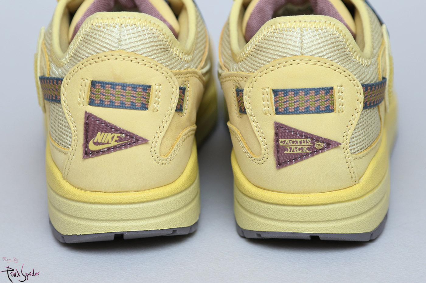 삼각형 패치에 왼쪽은 나이키 로고, 오른쪽에는 캑터스 잭 로고가 새겨져 있음