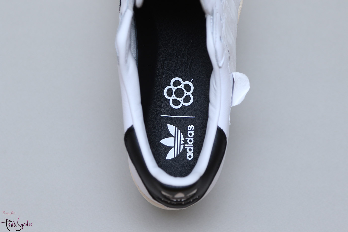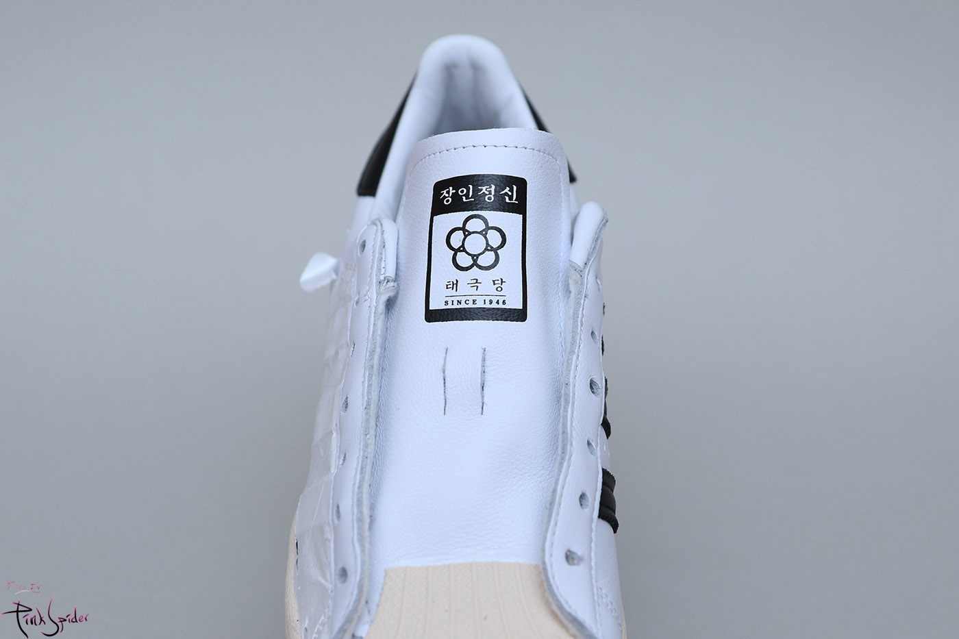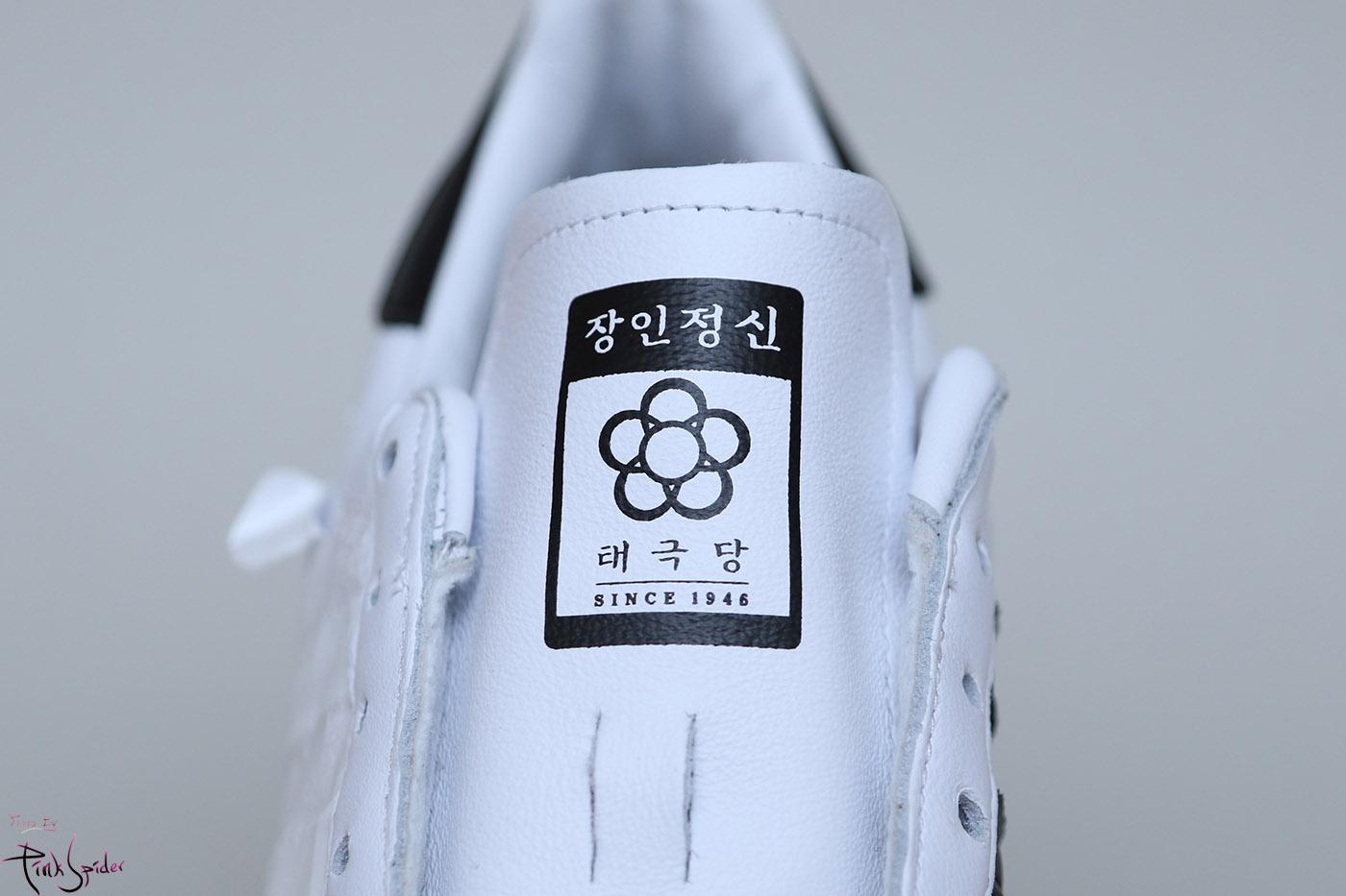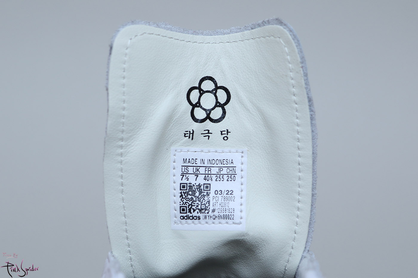 깔창은 블랙 컬러에 아디다스와 태극당로고가 같이 새겨져 있고
