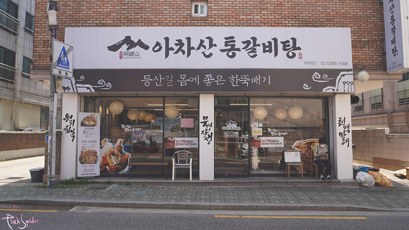 한산한 주택가 도로변에 있는 아차산 통갈비탕