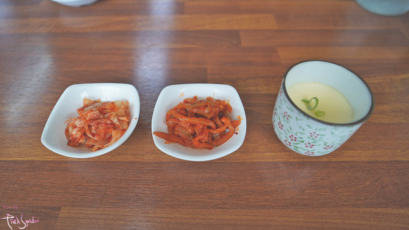 주문하면 김치, 짜사이 그리고 계란찜을 준다.
