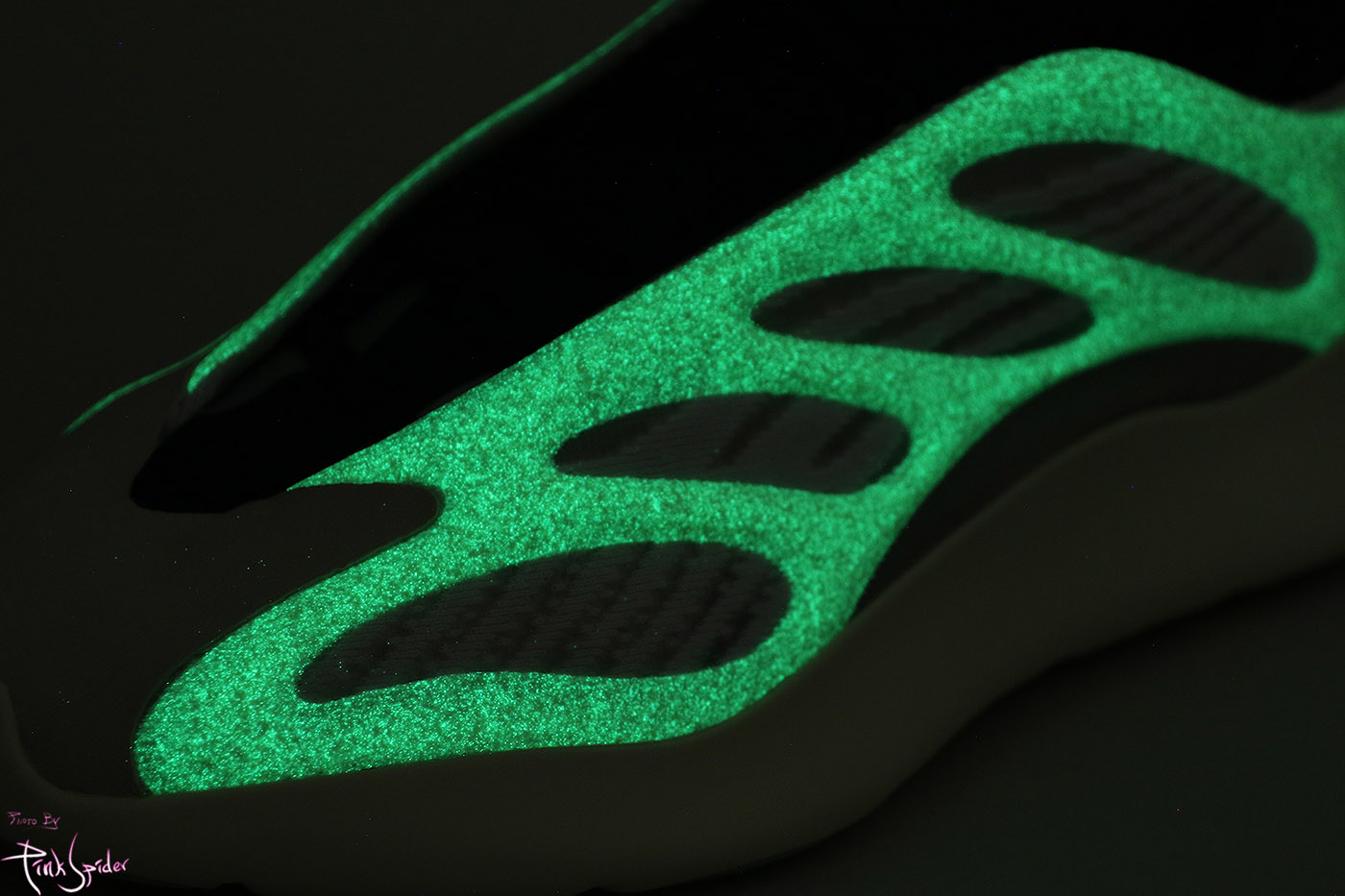 어퍼쪽에 뼈대같은 부분은 야광기능이 있는데 빛을 모으면 대력 이 정도로는 보이는 것 같다.
