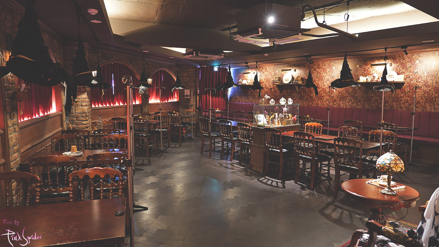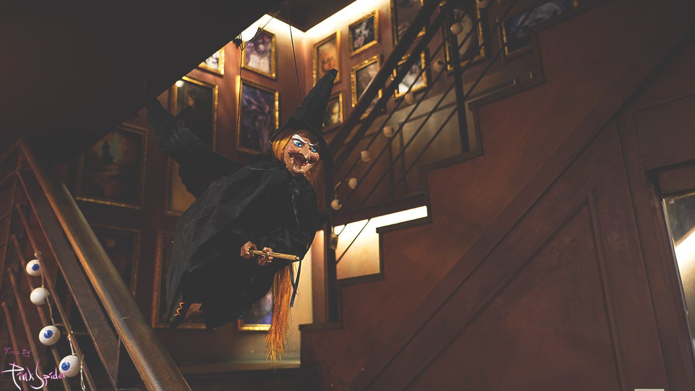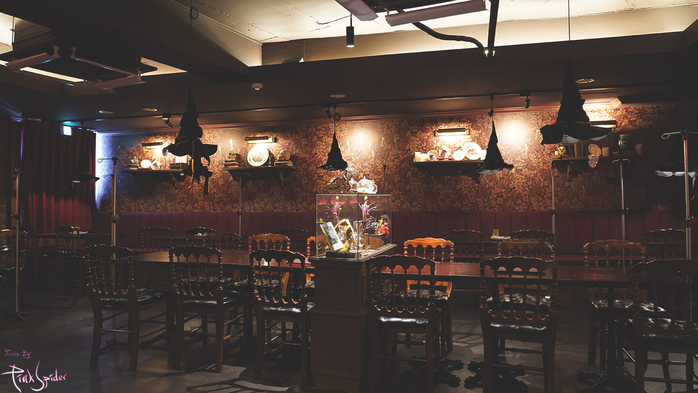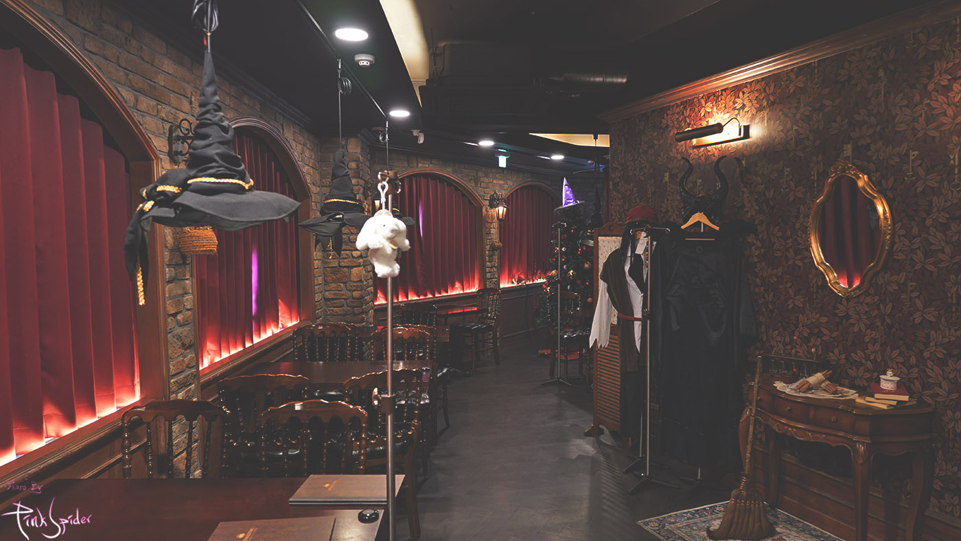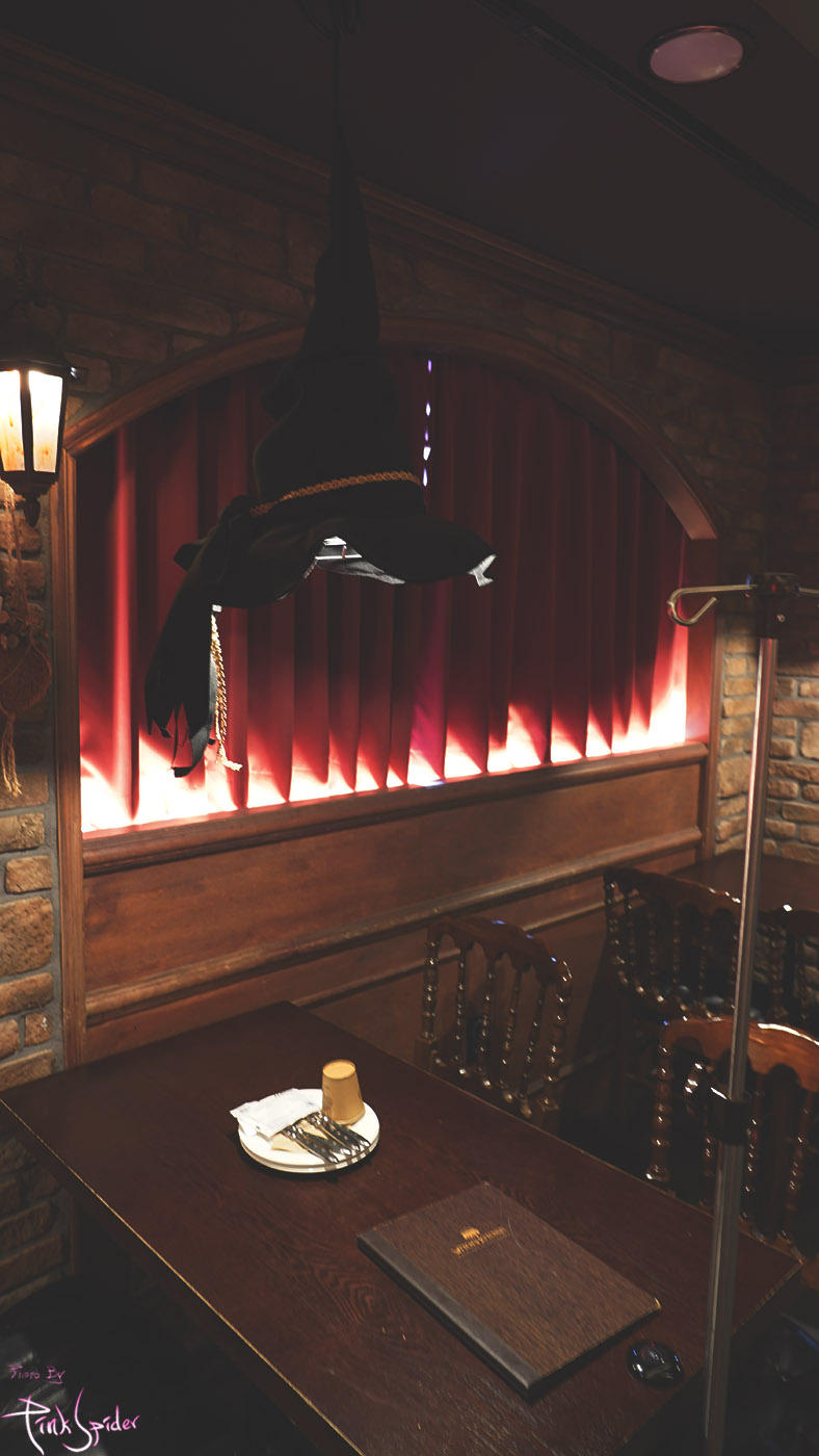 테이블 전등마다 마녀 모자를 장식해놓은 것도 재밌다.