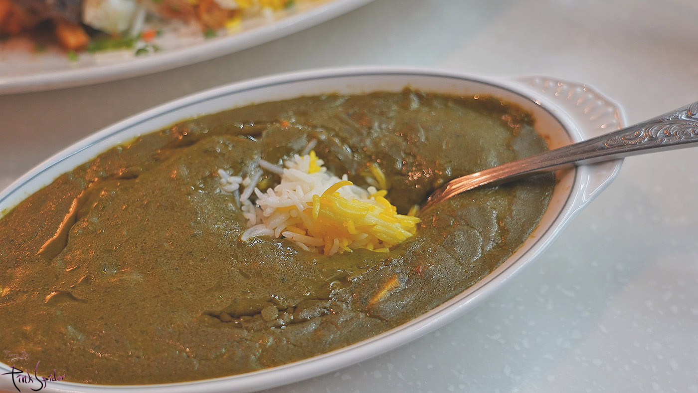 다진 양고기로 만든 쿠비데 케밥이랑 시금치를 넣어서 만든 팔락 파니르 카레를 주문~