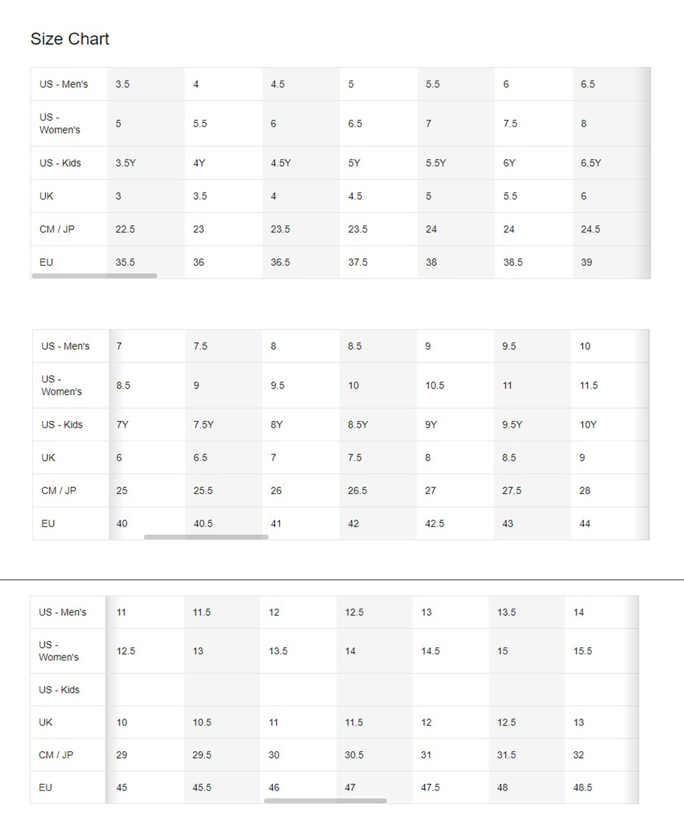 다행히 UK(영국), EU(유럽)사이즈 표기의 경우에는 남자, 여자 동일하게 적용되기 때문에