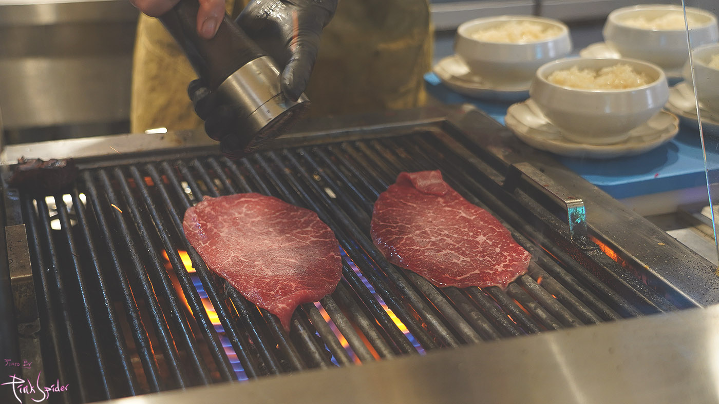 교쿠가 올라가는 것도 그렇고 넓직한 고기를 얹어 놓은 것도 보면