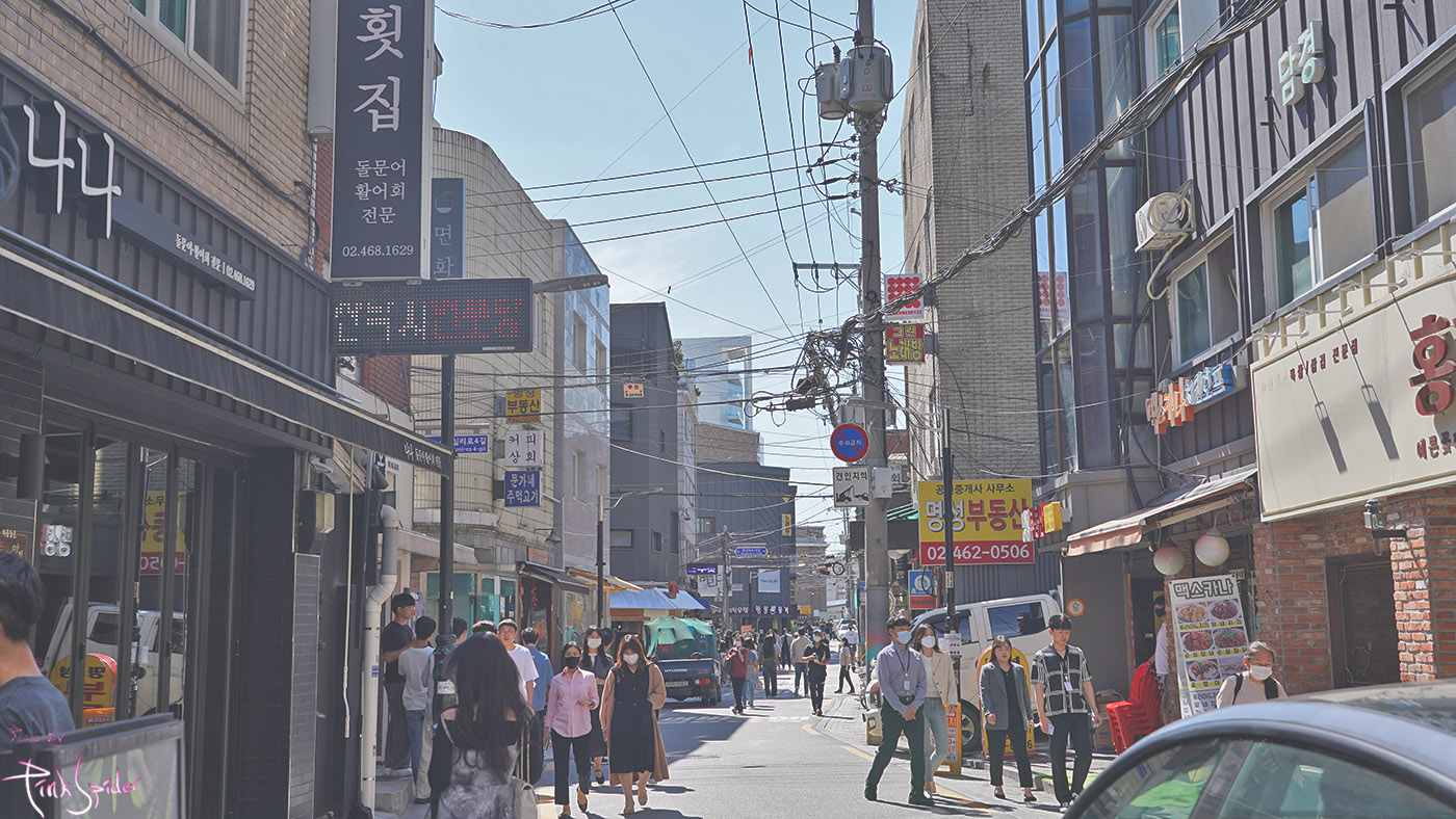뚝섬역 근처가 다소 딱딱한 분위기의 상업지구같은 느낌이라면