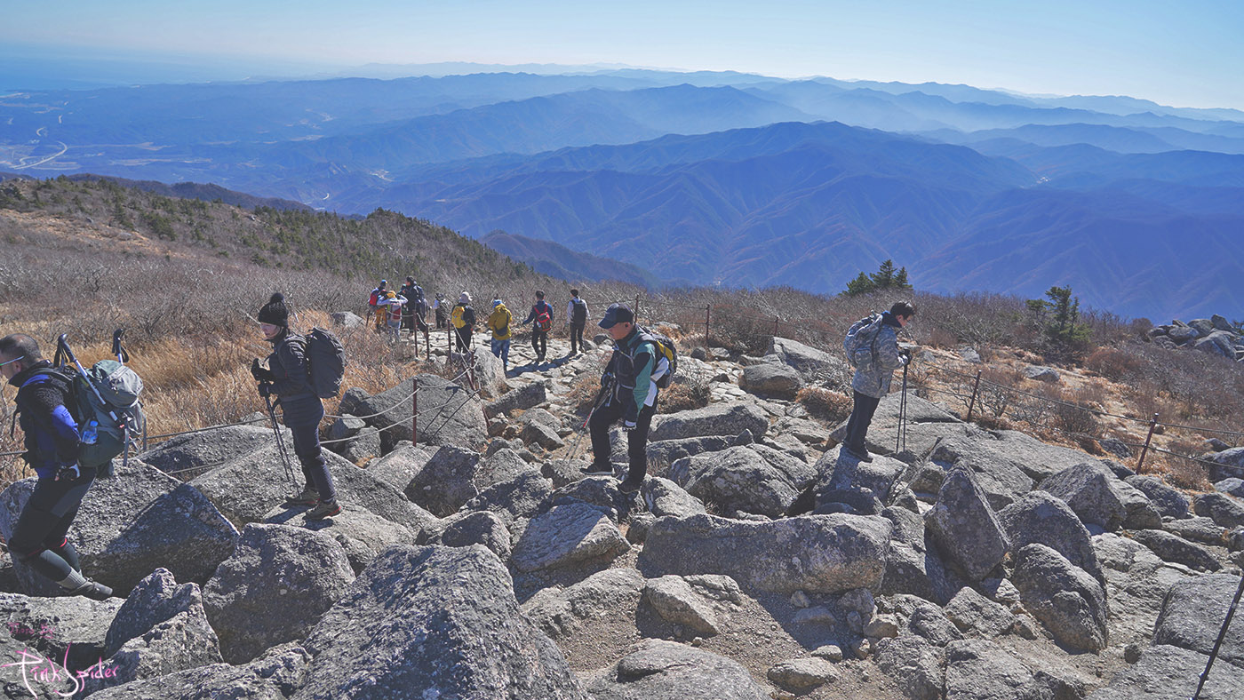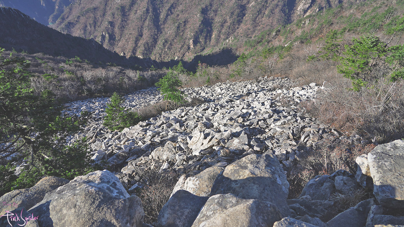 다른 능선들과는 다르게 너덜바위가 많아서 만만치가 않았다.