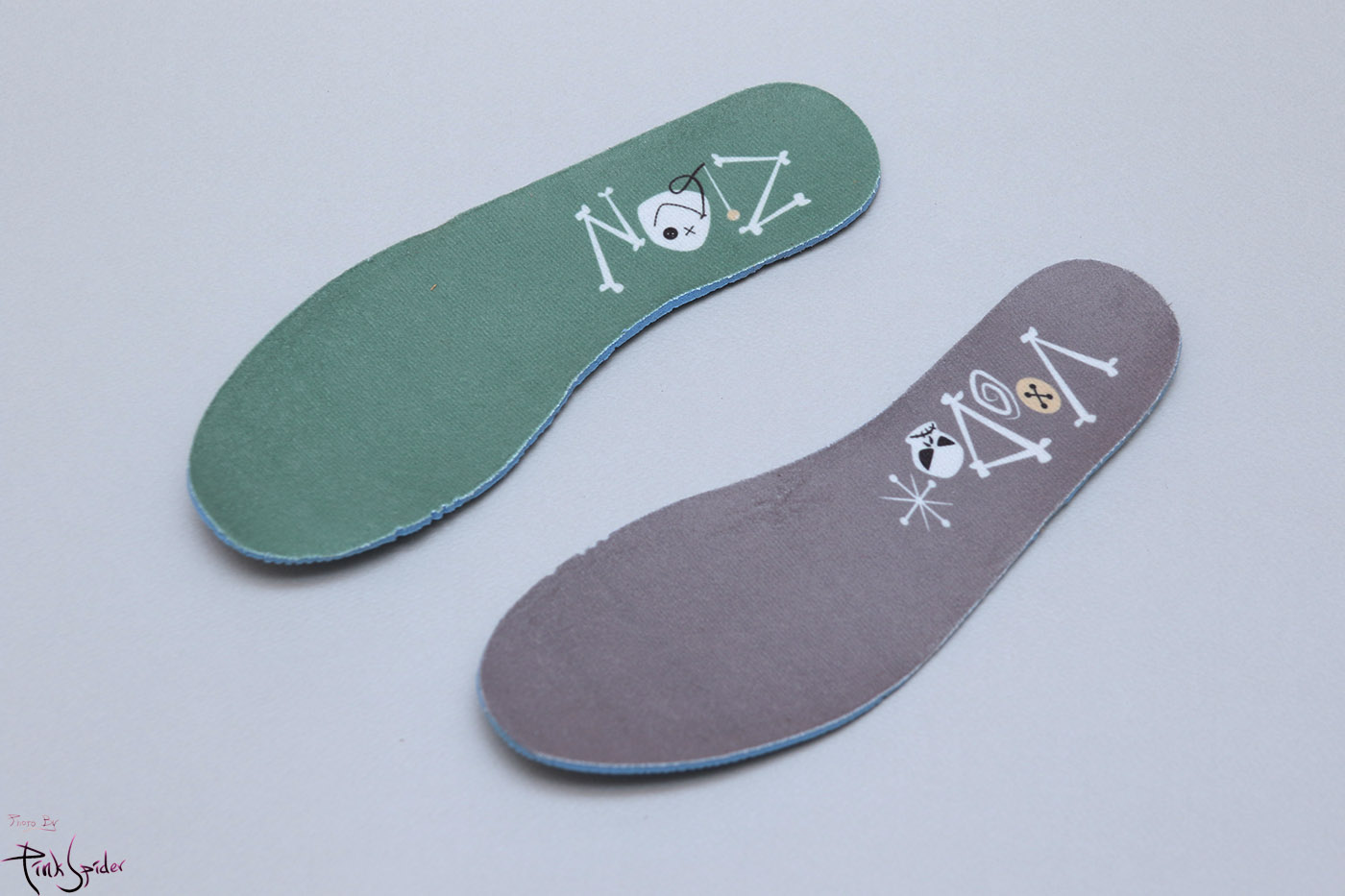 뒷축에 동일한 레터링이 양쪽 깔창에 새겨져있고 컬러는 또 다름~