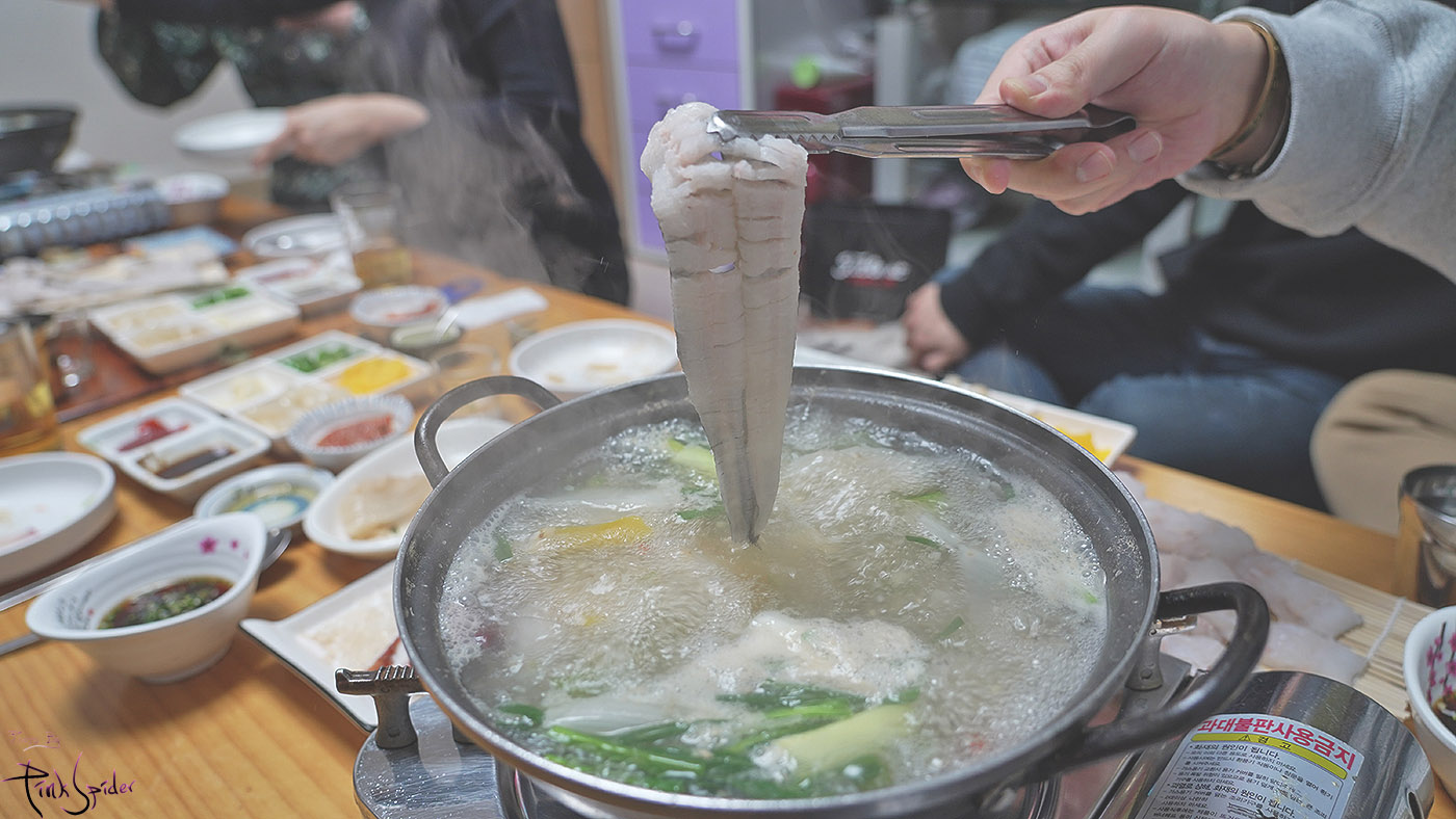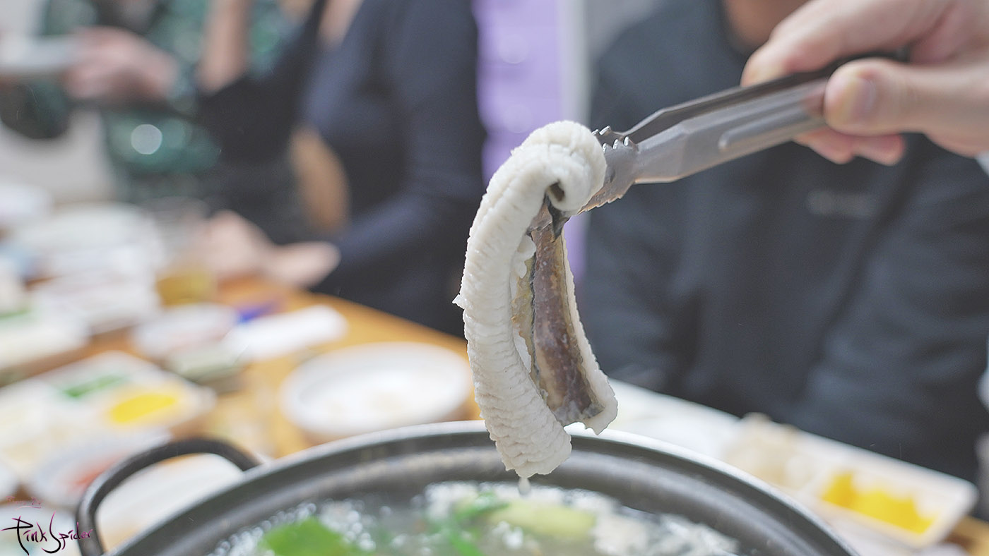 국물이 끓기 시작하면 갯장어를 슬쩍 올려서