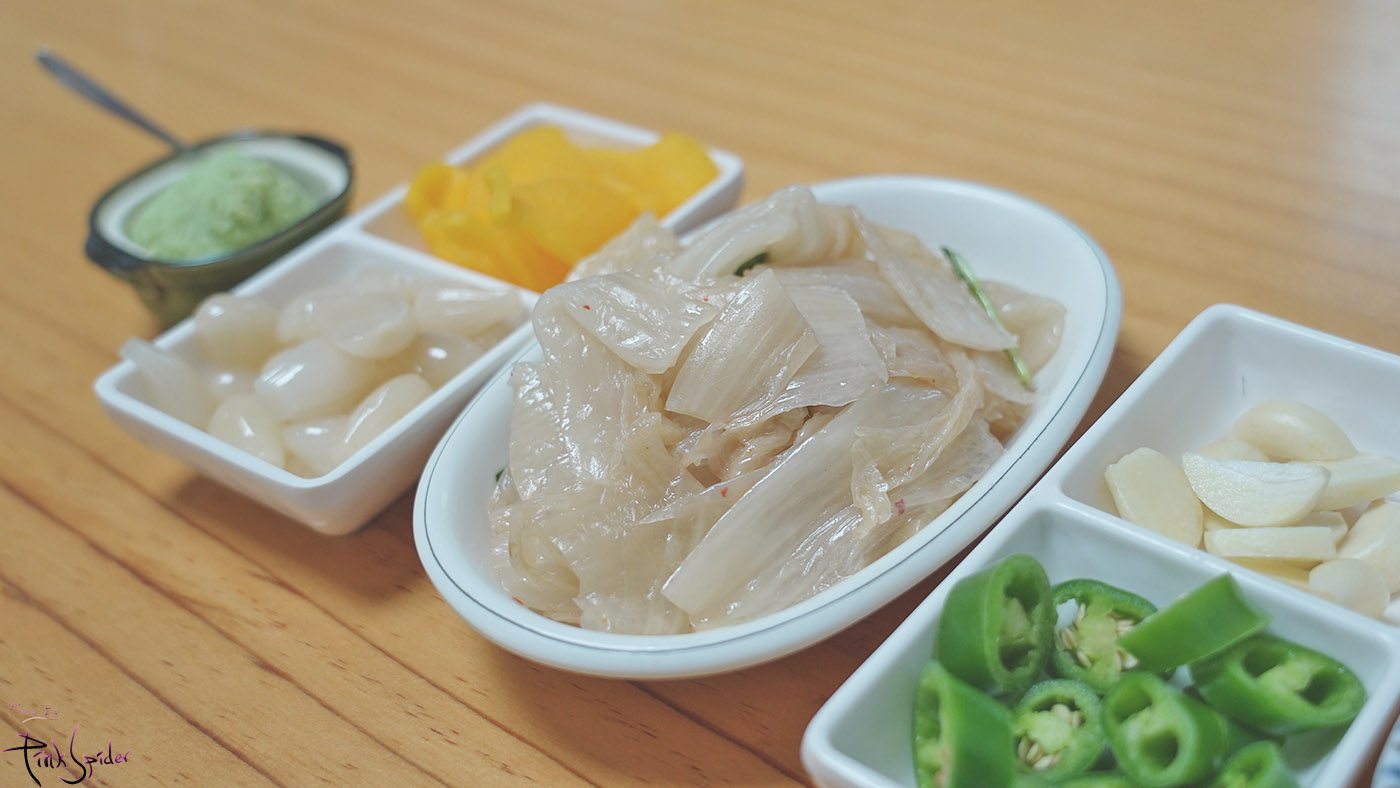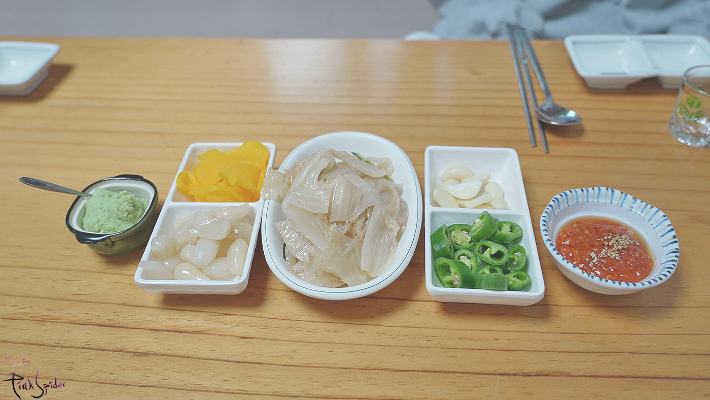 간장, 초고추장 외에는 앞접시 외에는 딱히 눈에 들어오는 건 없다.