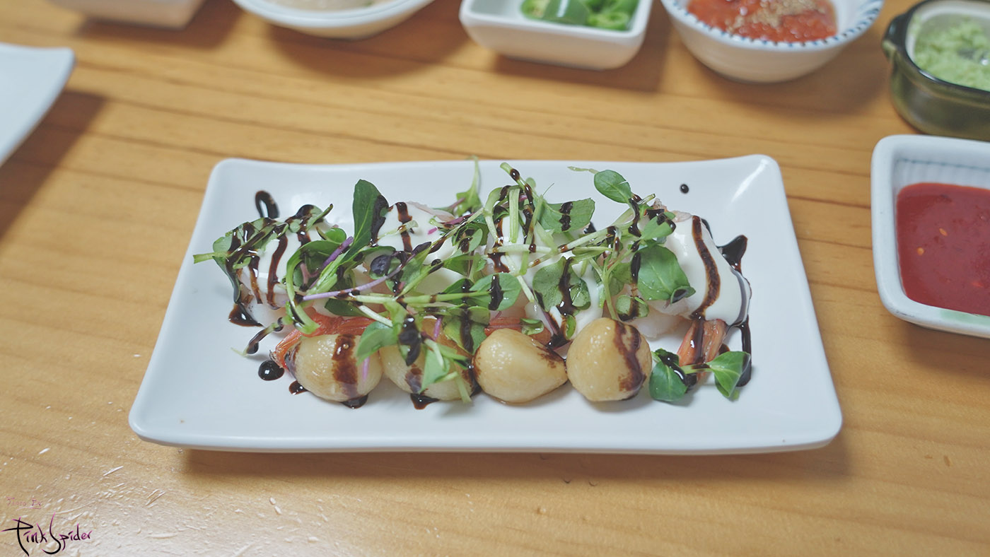 첫 스타트는 전복과 여러 해산물이 들어간 간장초무침이 나왔다.