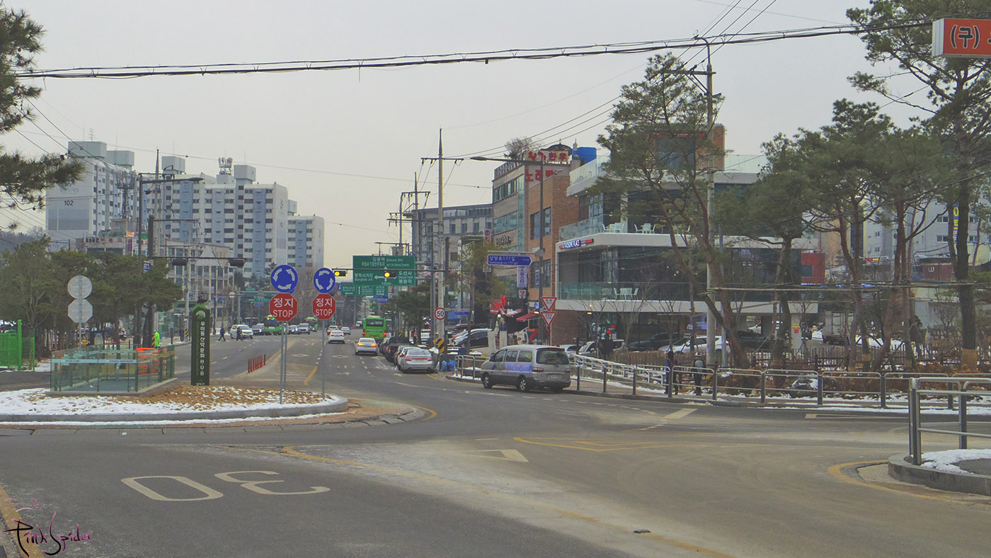 친구 기다리면서 인도에 살짝 뭉쳐있는 눈들을 밟아봤는데 생각보다 괜찮은 느낌~