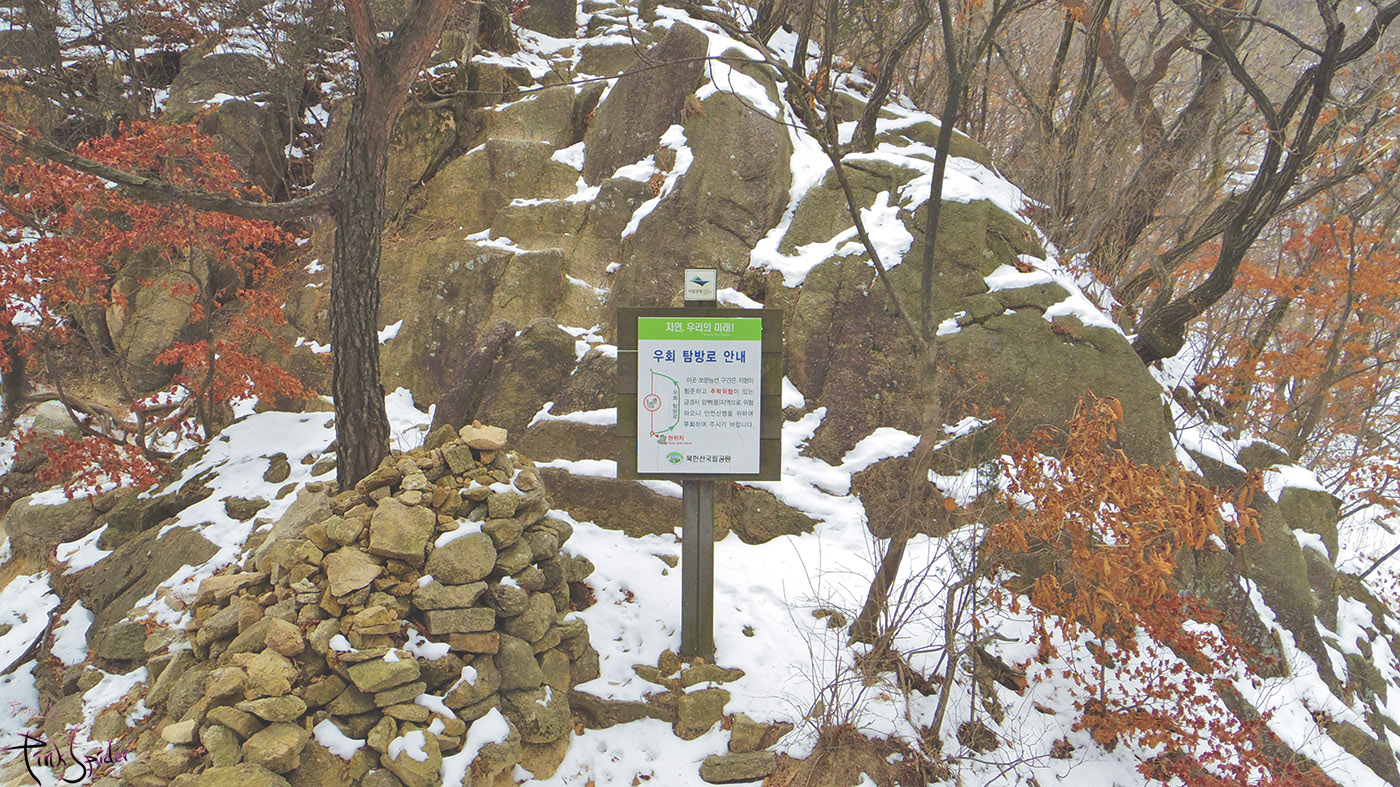 여기서 좀 험한 길로 가보려고 했는데 눈 때문에 그냥 우회해서 올라감~