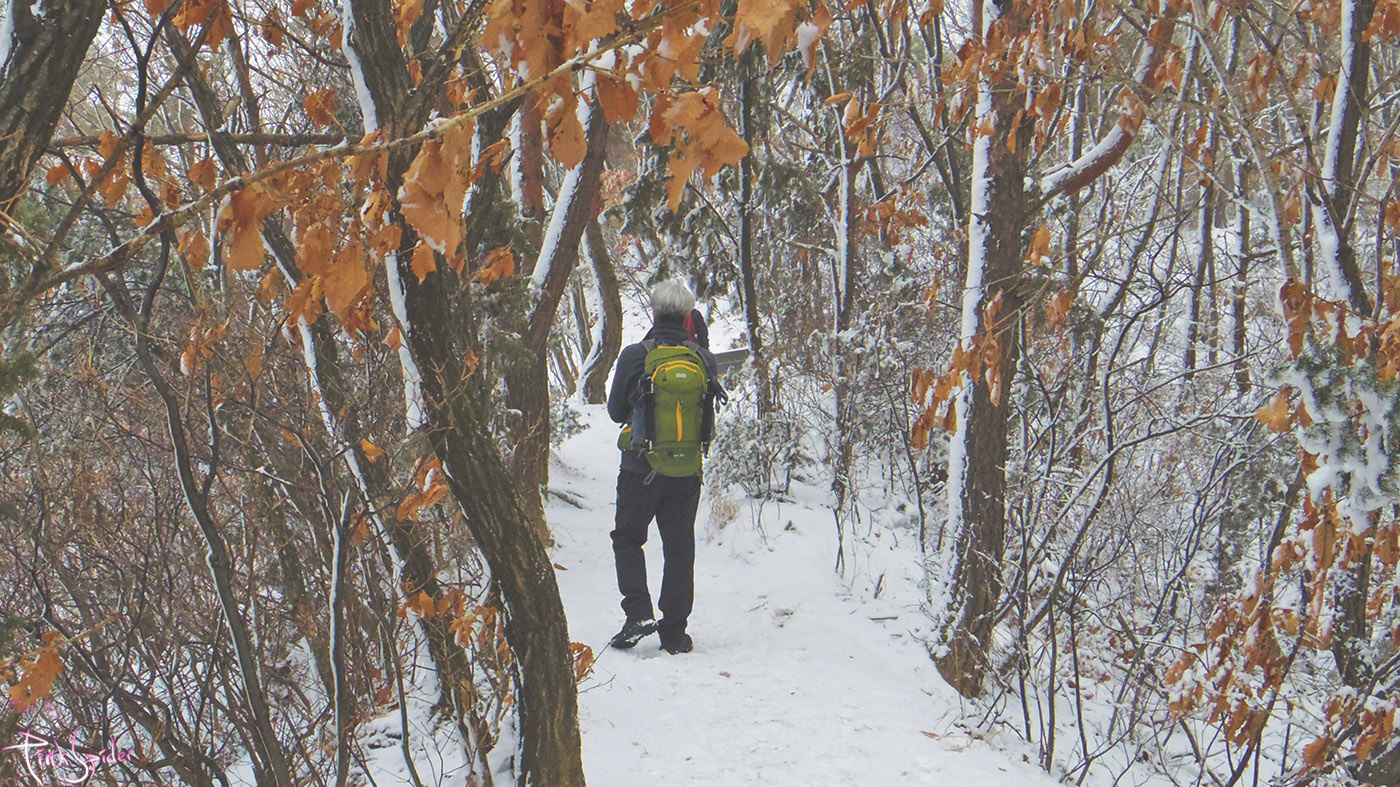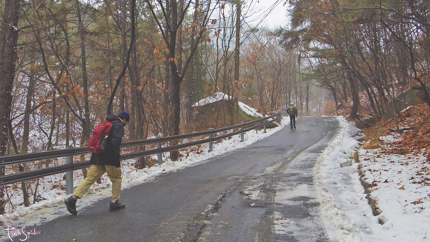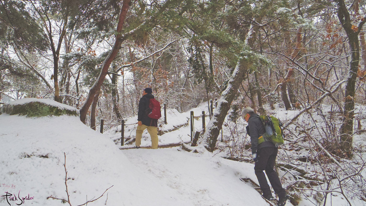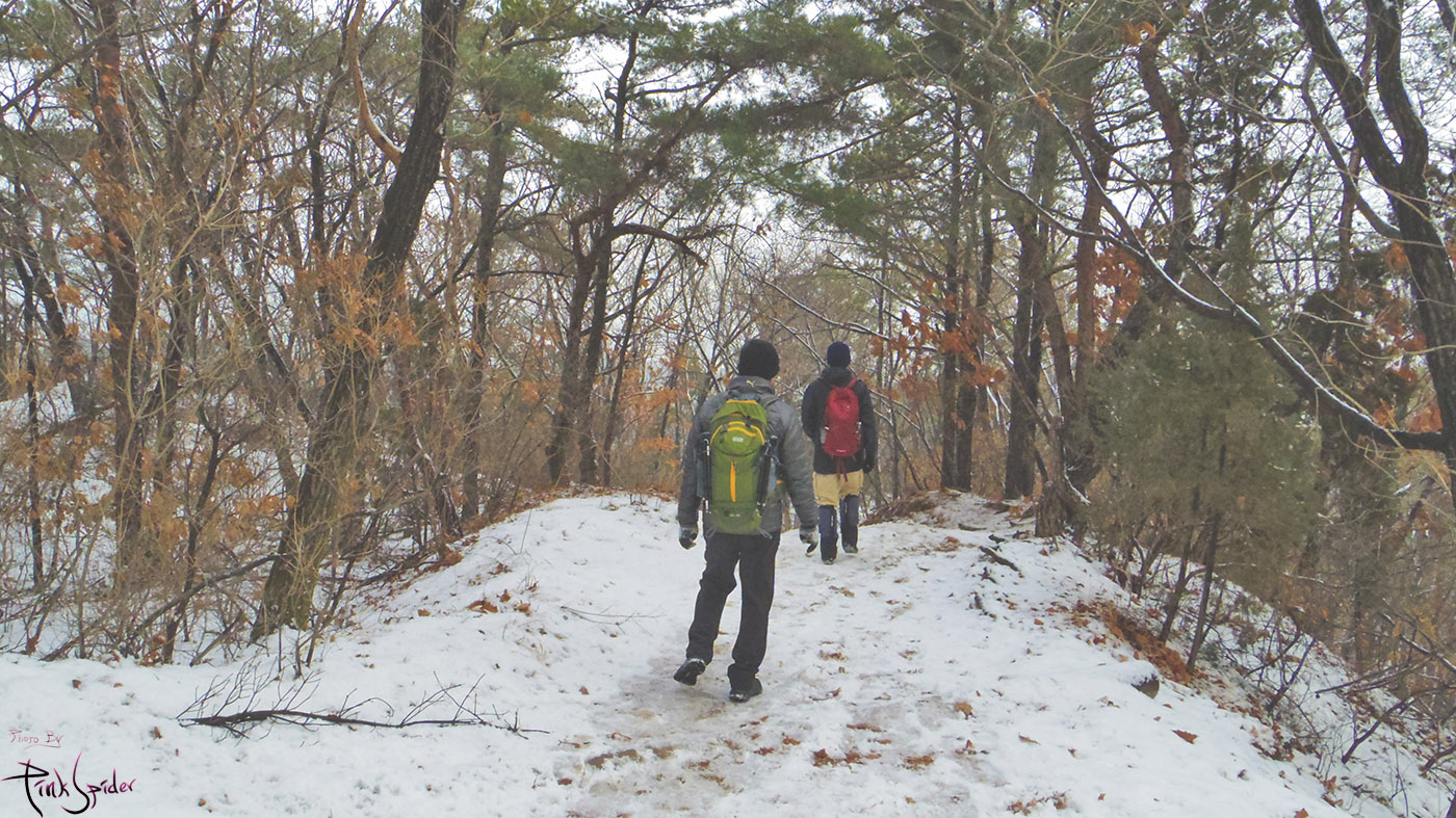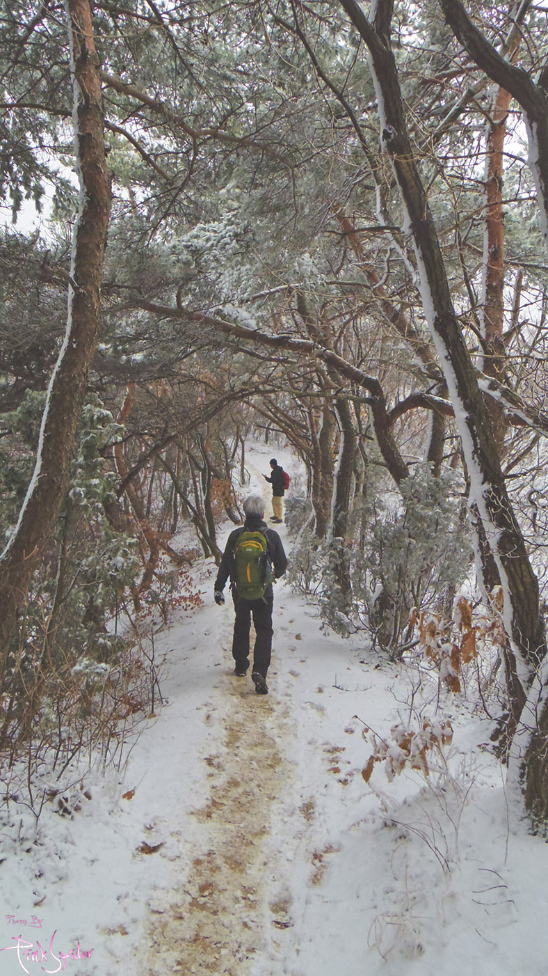 이 길을 선택한 이유는 눈이 제법 내린 것도 있고 경사도가 완만한 흙길이라서