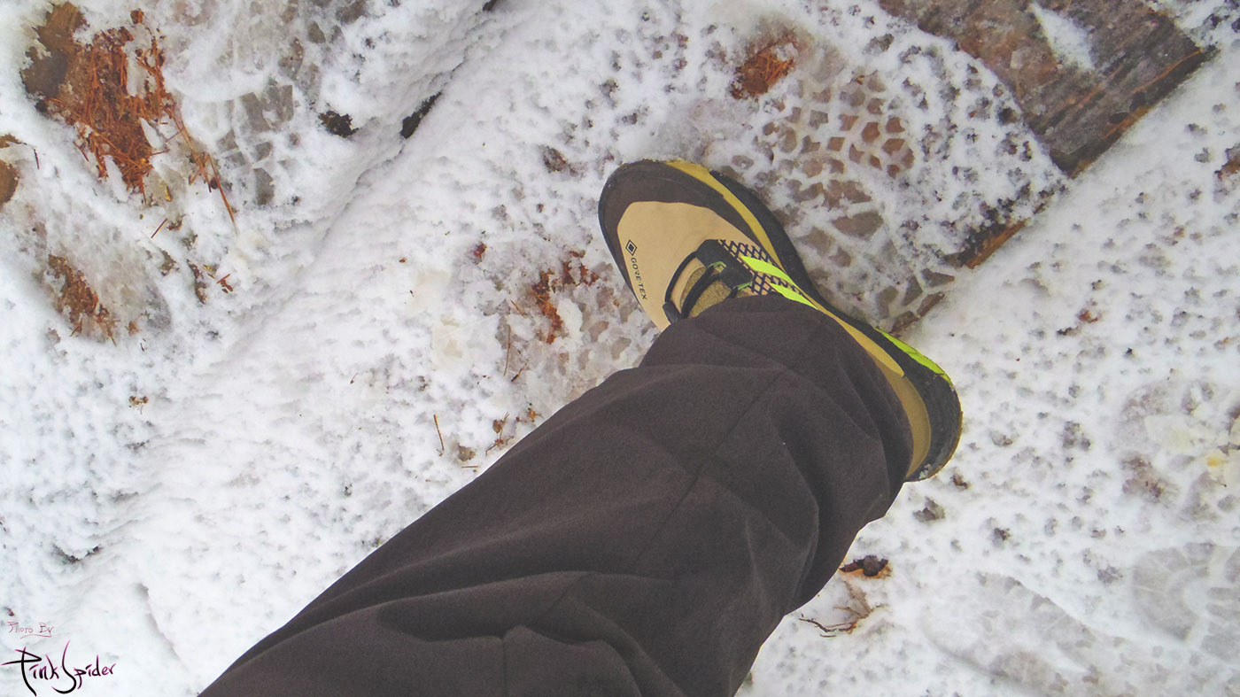 오늘은 테렉스 프리하이커1을 신고 갔었는데 눈 내린 산길에 무난하게 사용했다.