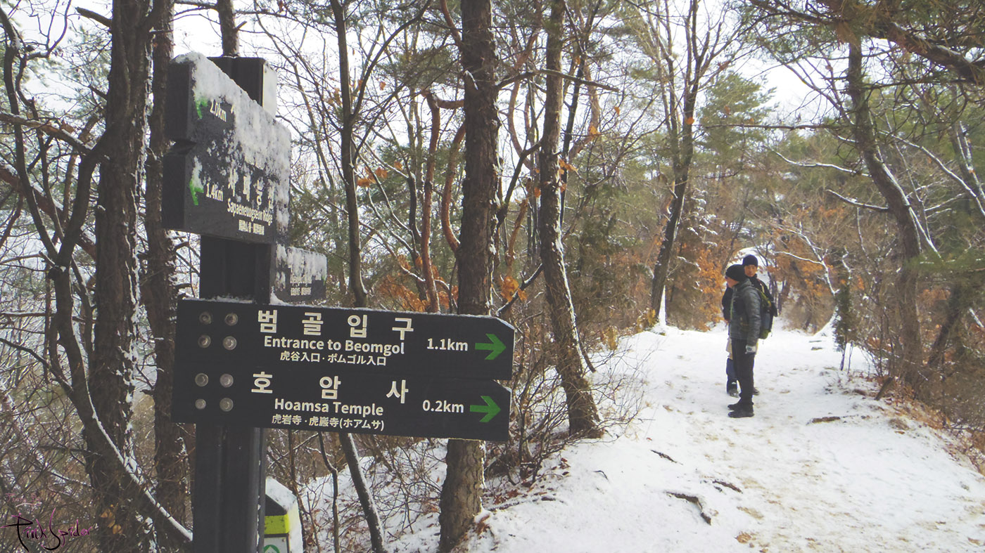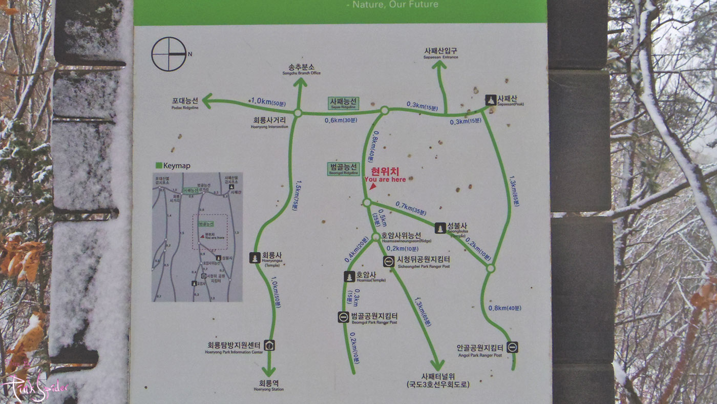 그렇게 올라왔던 길에서 오른쪽은 호암사로 내려가 회룡역으로 가는 길이고