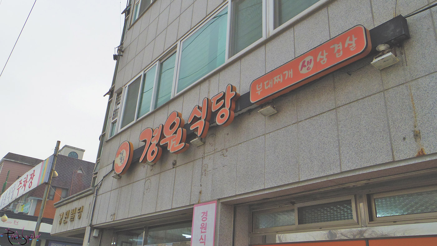 걸어서 멀지 않은 곳에 부대찌개로 유명한 경원식당이 있어서 걸어서 갔는데
