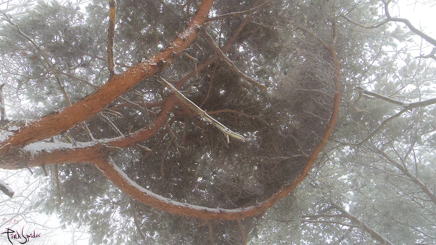 우연히 위를 쳐다보니 둥지를 틀어준 것 같은 독특한 소나무가 있어서 좀 놀람