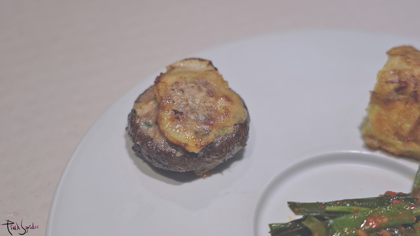 지리산 표고버섯에 다진 고기를 올린 전도 나오고
