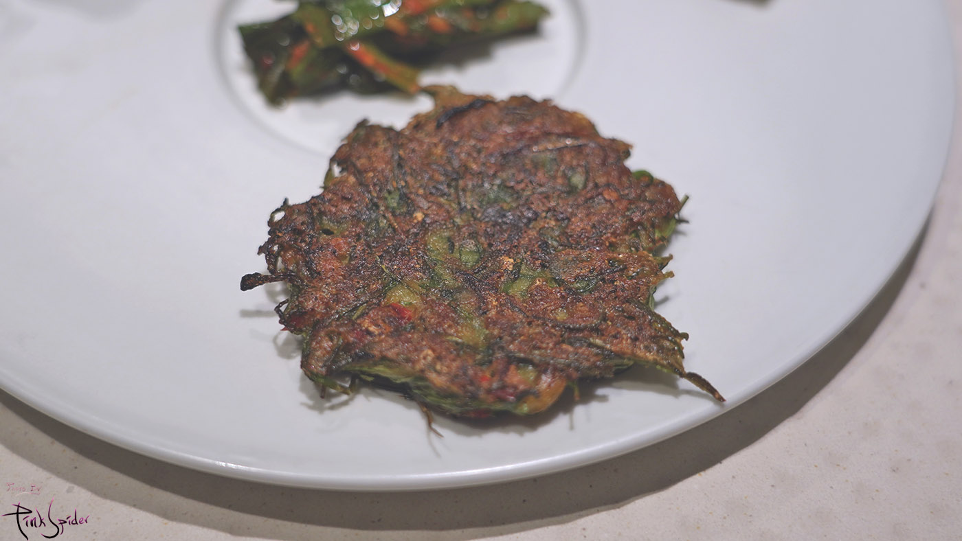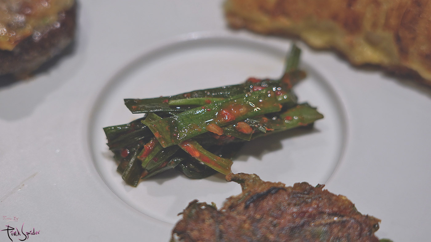 맛이 약한 쑥향이 나는 느낌에 바삭하게 지져서 그런가 식감은 파도 아니고 미나리도 아니고 뭔가 오묘한 맛이었는데