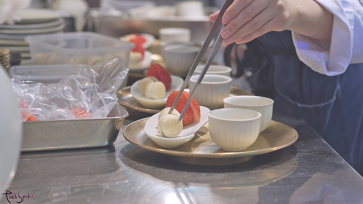 같이 나온 킹스베리 딸기, 인절미 미니 마카롱 그리고 곶감이 같이 나온다.