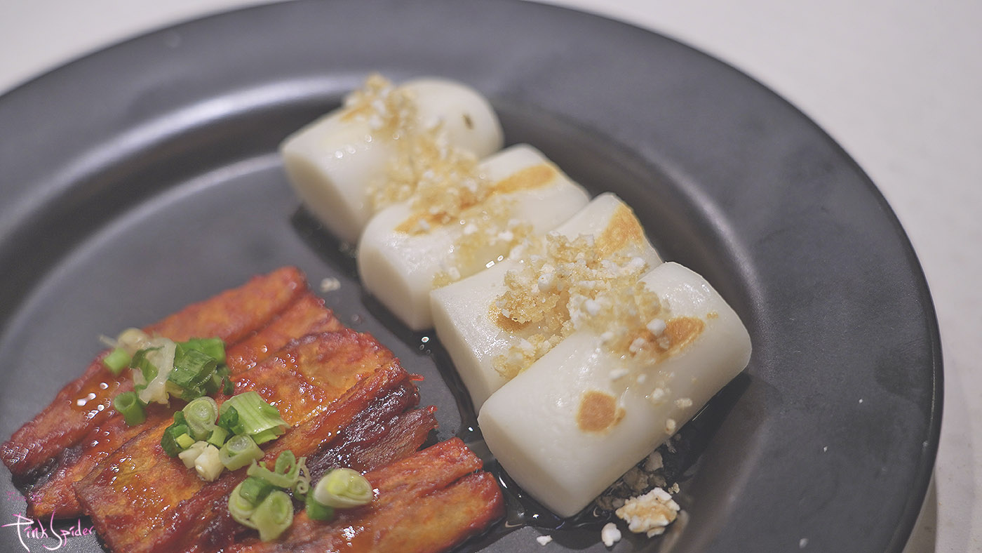 한쪽 면을 살짝 구운 가래덕에 찹쌀가루 올리고 베이스에는 꿀을 올렸고 식감은 굉장히 부드러웠음