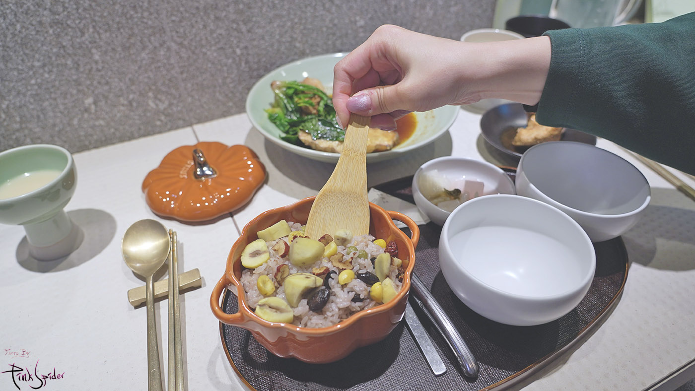 영양밥을 담은 호박모양 그릇이 재밌다.