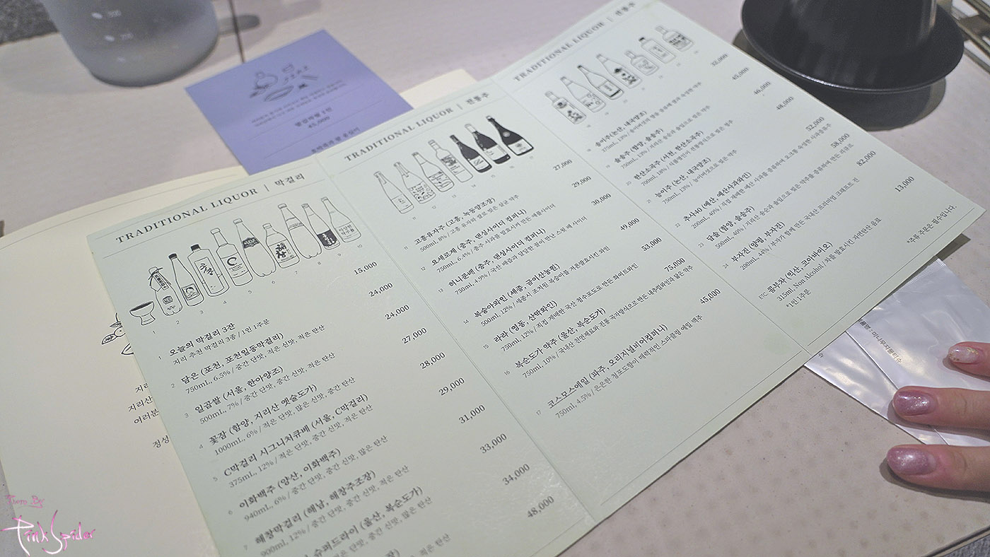 다만 주류는 인당필수라서 보틀로 주문을 하던지 아니면 오늘의 막걸리 3잔, 막걸리 페어링으로 1인당 주문을 하면 된다.