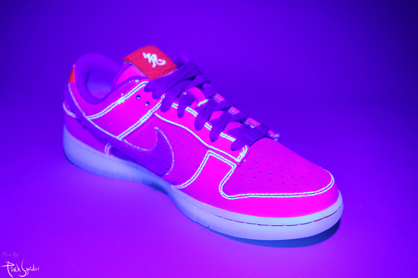 화이트 스티치 라인들은 빛반응을 하고 어퍼쪽에 레드컬러는 빛반응을 하지만