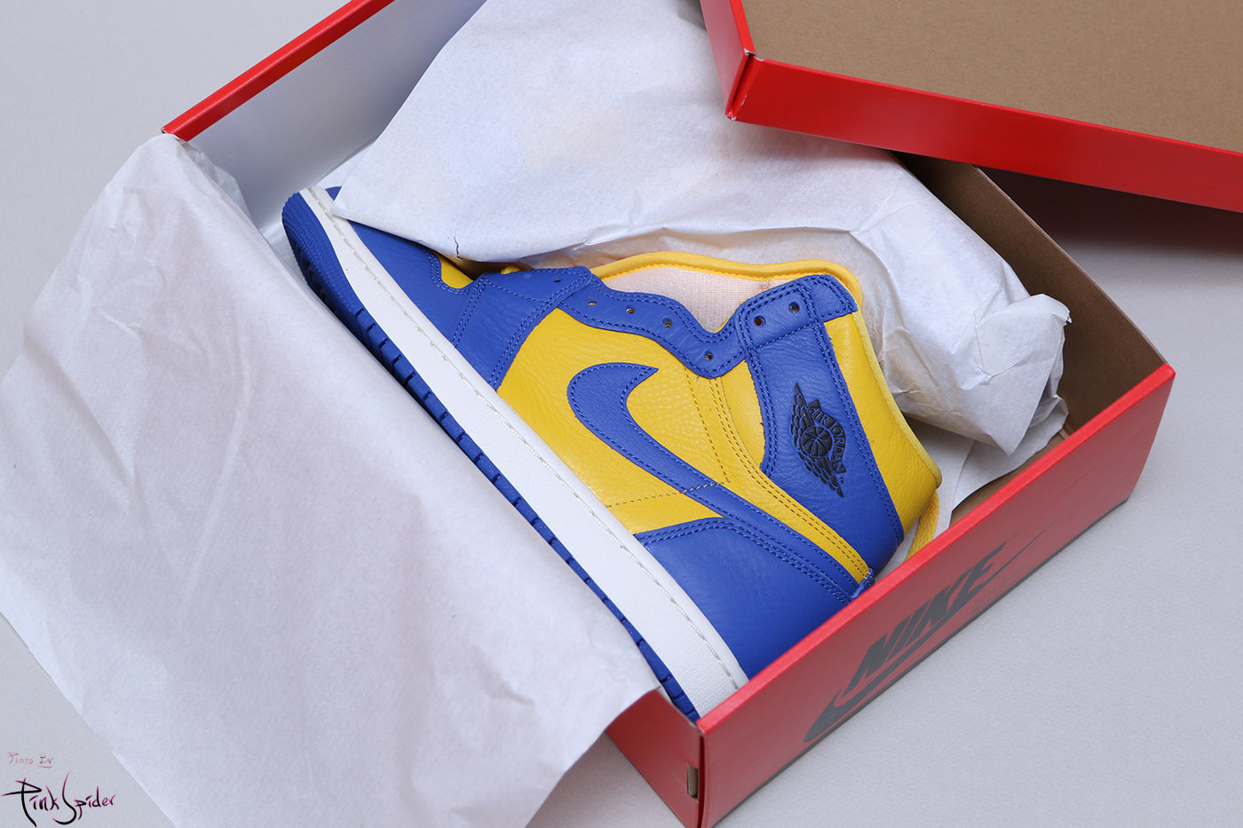 자~ 박스를 열어보면 박스 컬러와는 전혀 다른 컬러 조합의 조던1이 들어있음~