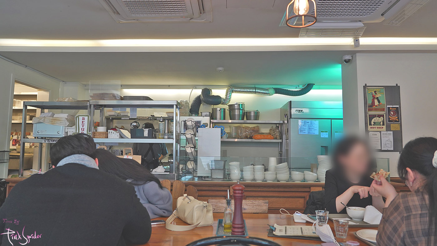 내부는 생각보다는 그리 큰 편은 아니고 정가운데에 공용테이블이 있고 벽쪽에 2인 테이블이나