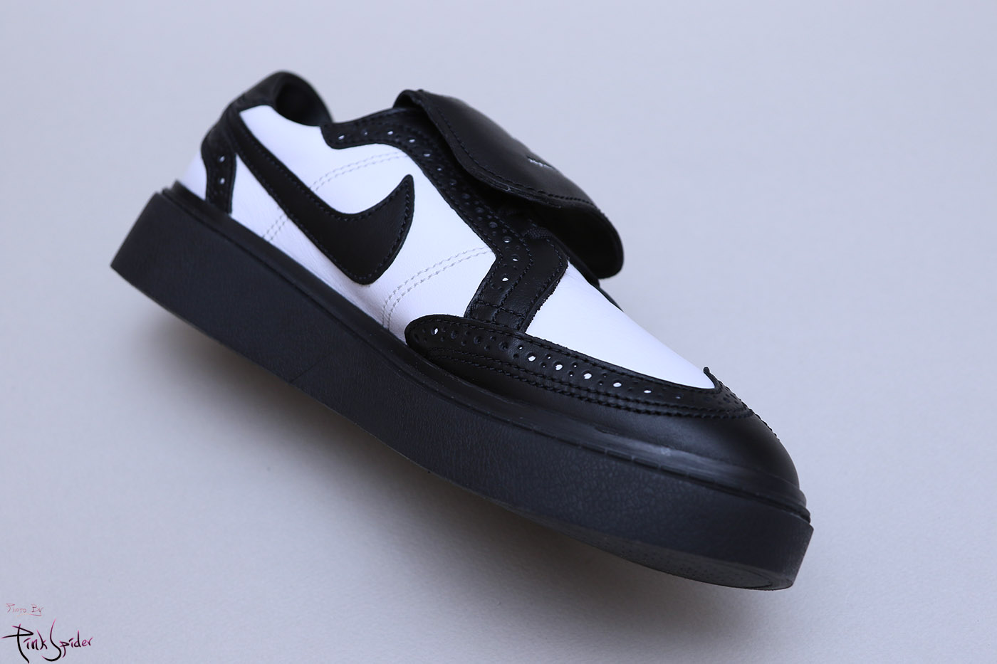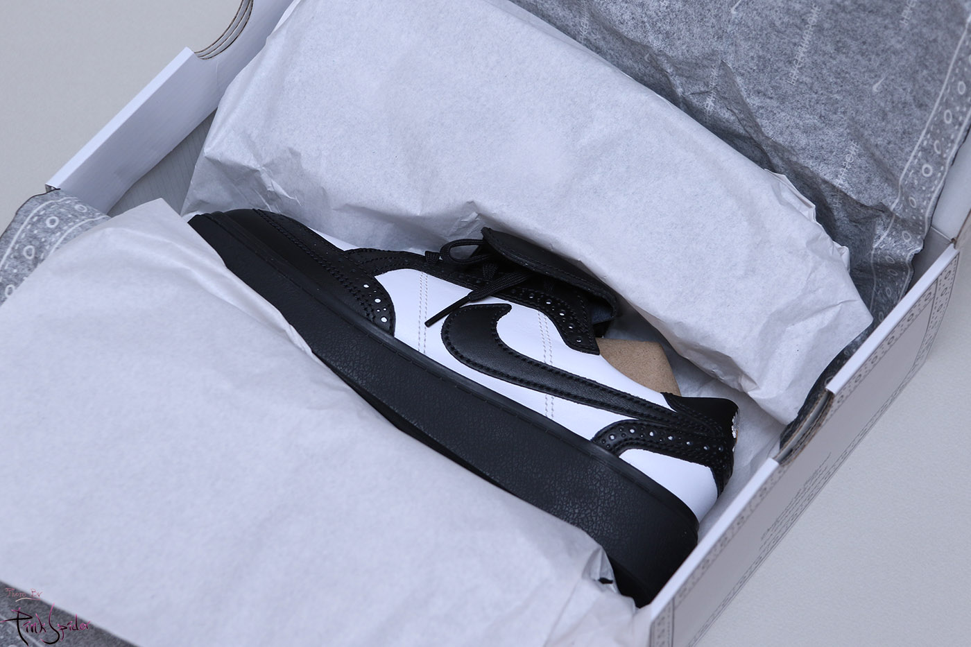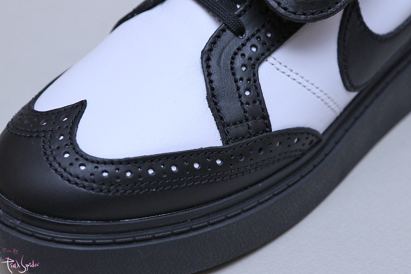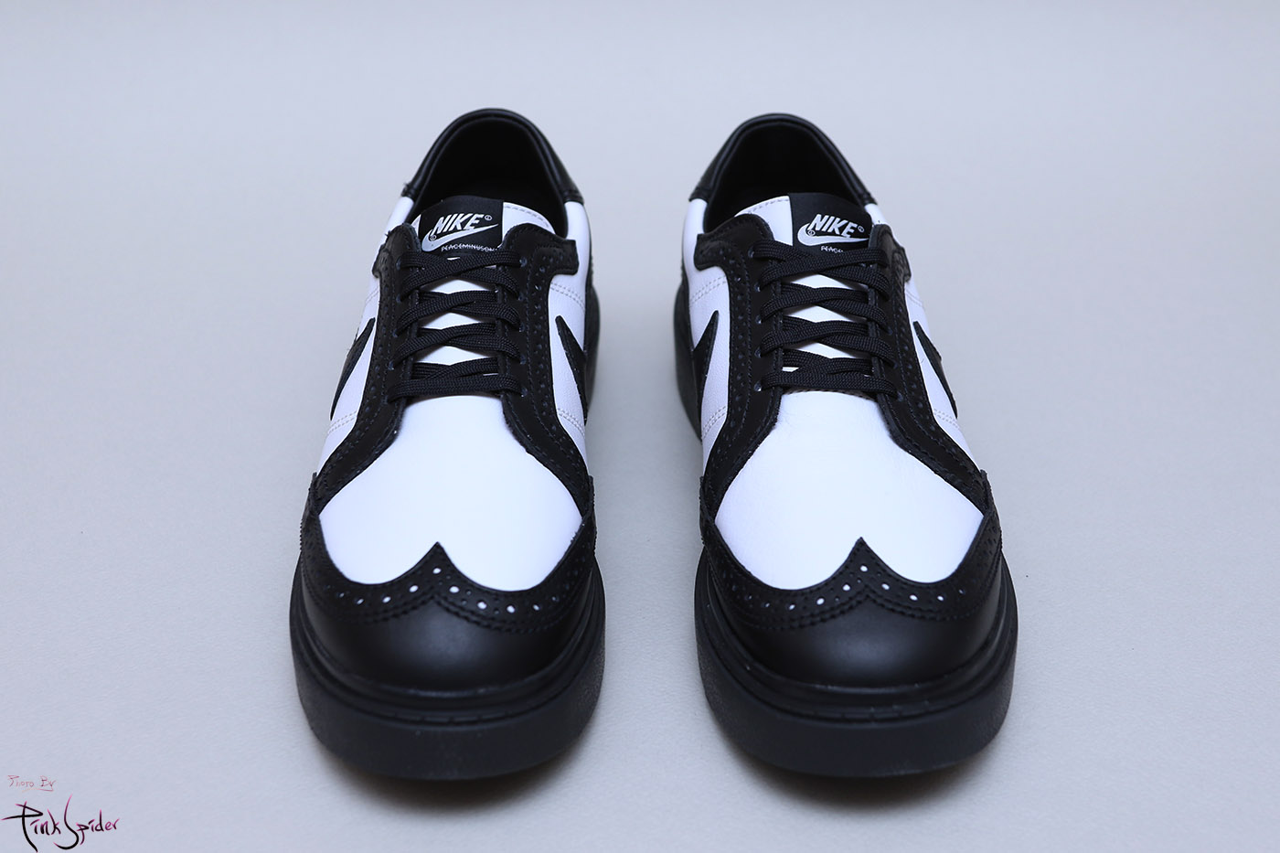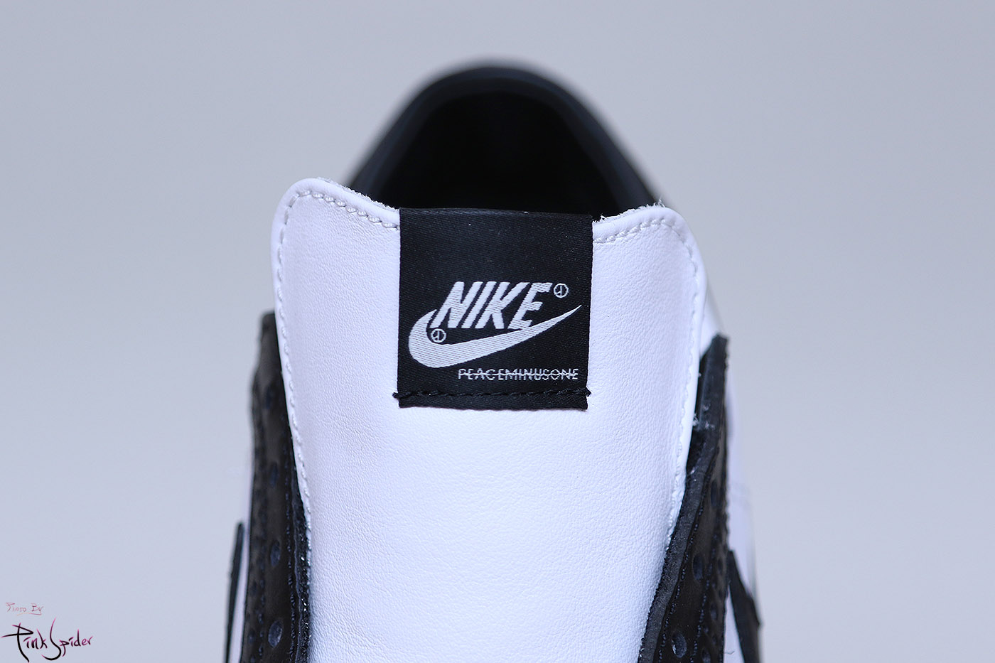 발등덮개는 기존 올화이트와 동일하게 오른쪽에는 나이키로고, 왼쪽에는 피스마이너스원 로고가 새겨져 있고
